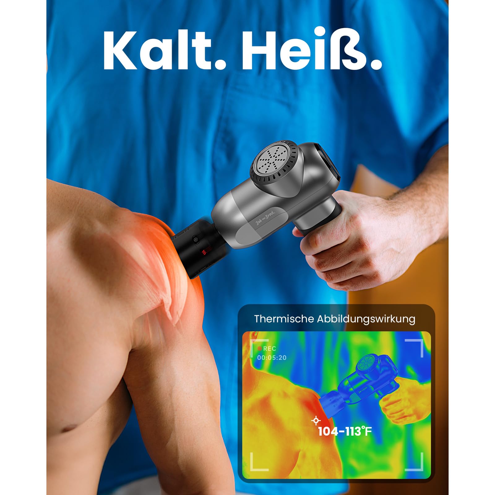 Massagepistole mit Wärme und Kältetherapie, Bob and Brad C2 Pro Tiefengewebsmassagegerät mit Wärme, Professionelles Elektrisches Massagegerät für Zuhause, Fitnessstudio, Erholung, Schmerzlinderung