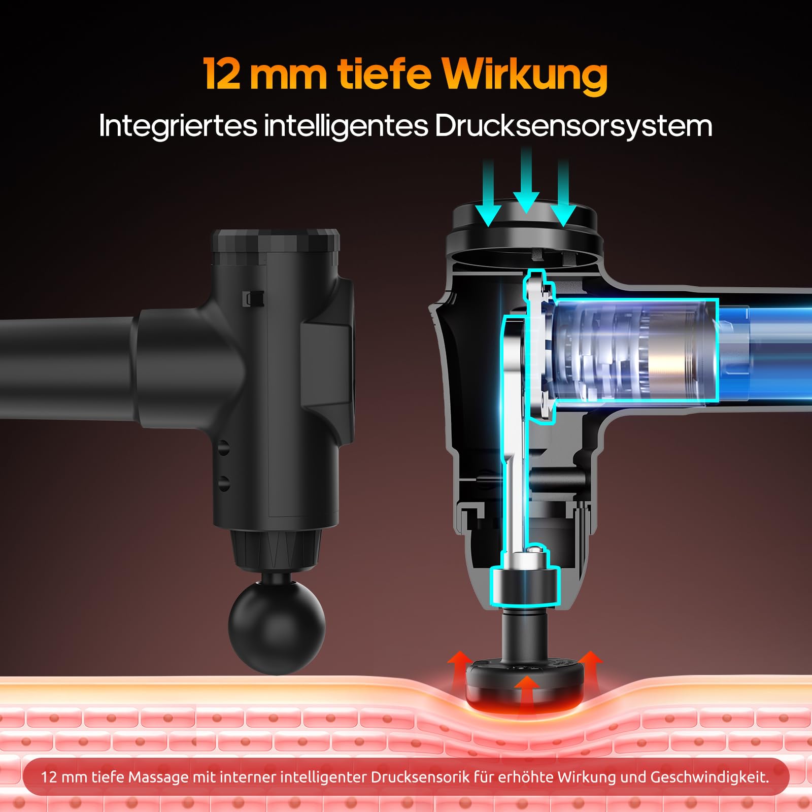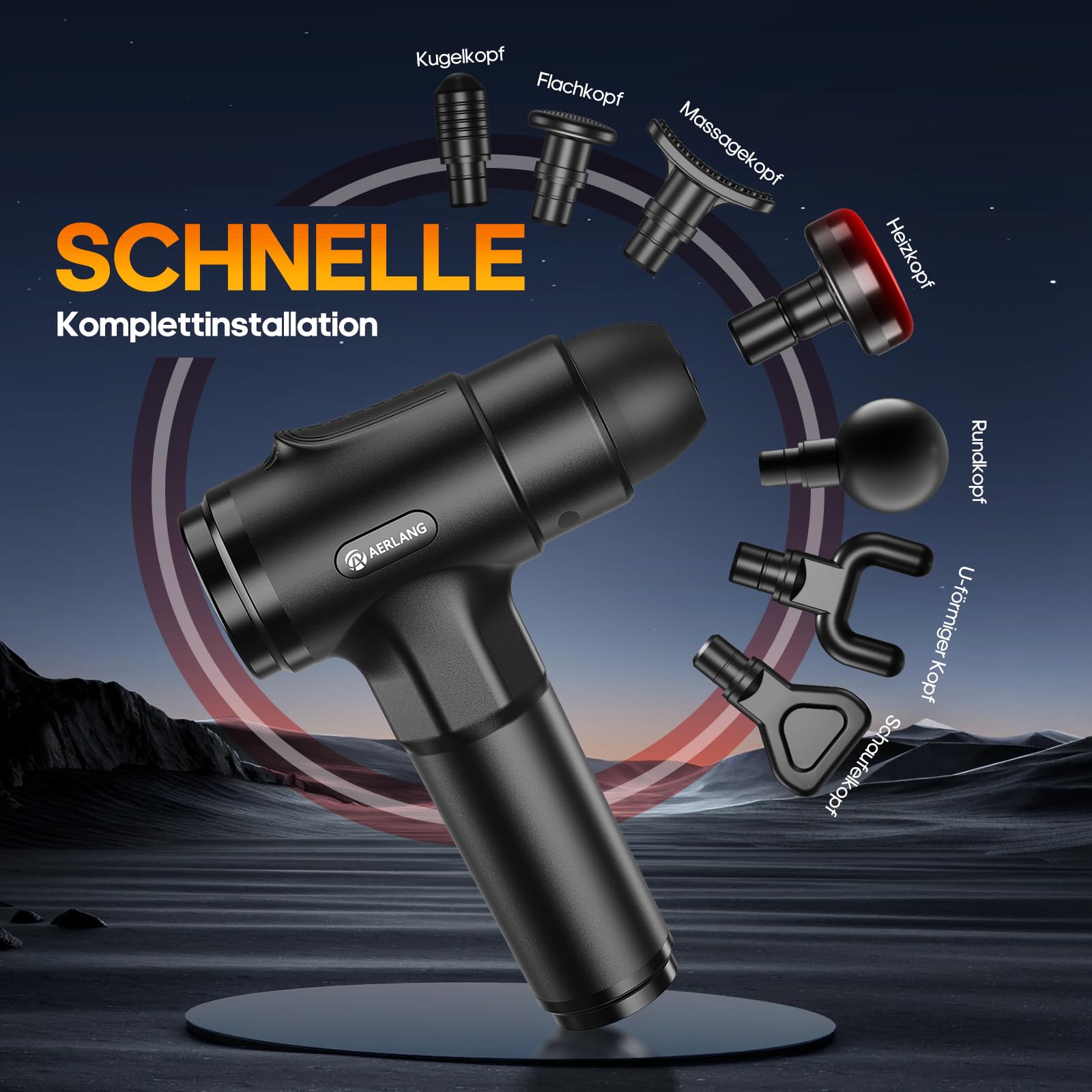 Massagepistole mit Wärmefunktion, AERLANG Massage Pistole Massage Gun, Muskel Massage Gun Massagegerät mit LED Anzeige, Handmassagegeräte Massage Pistole mit 20verstellbaren Stufen&7 Massageköpfen