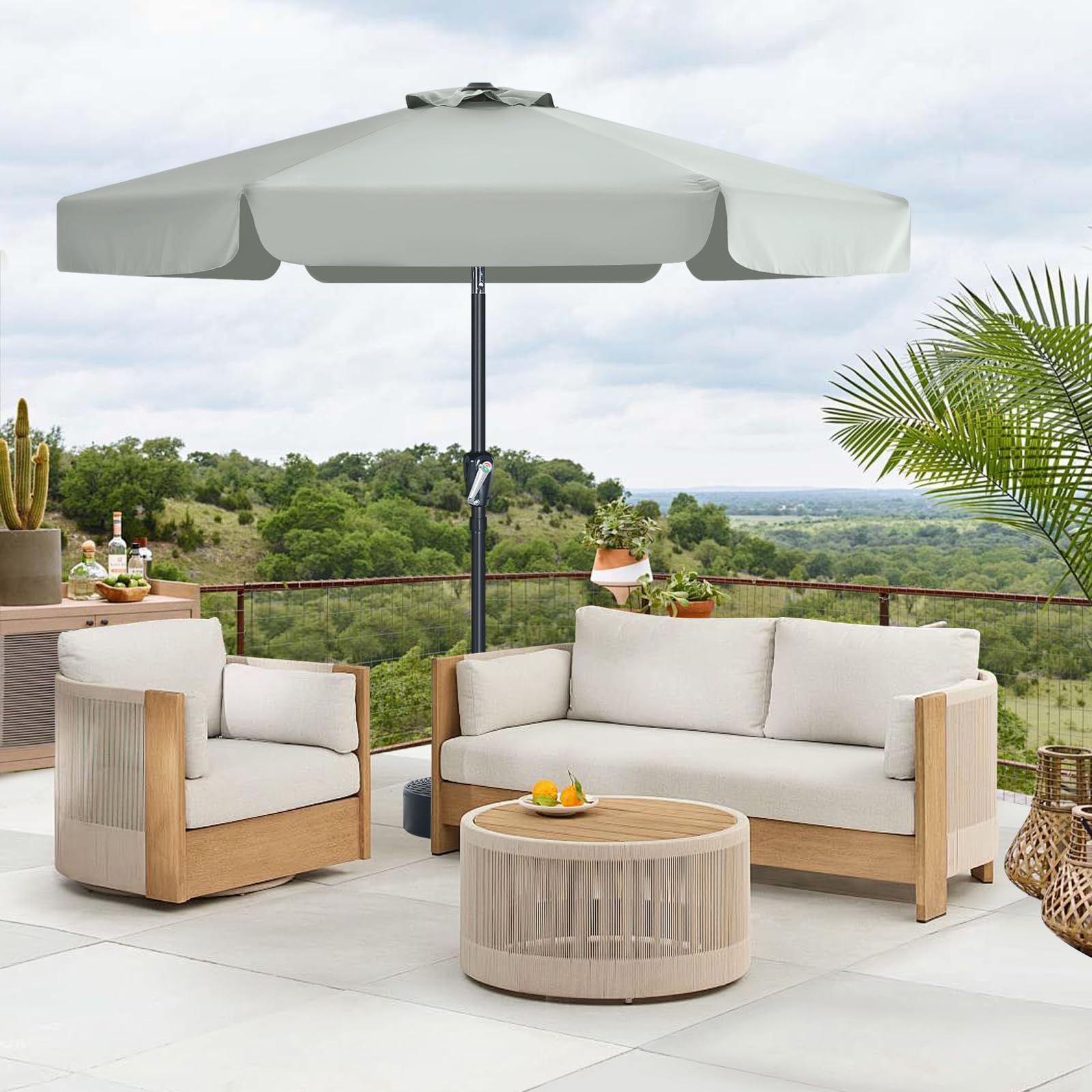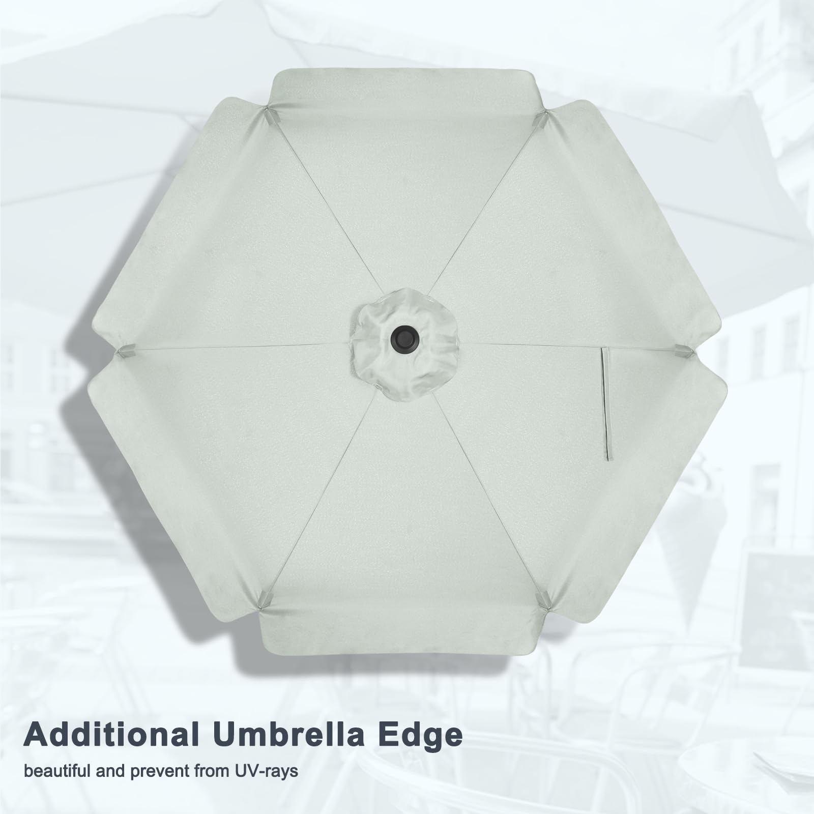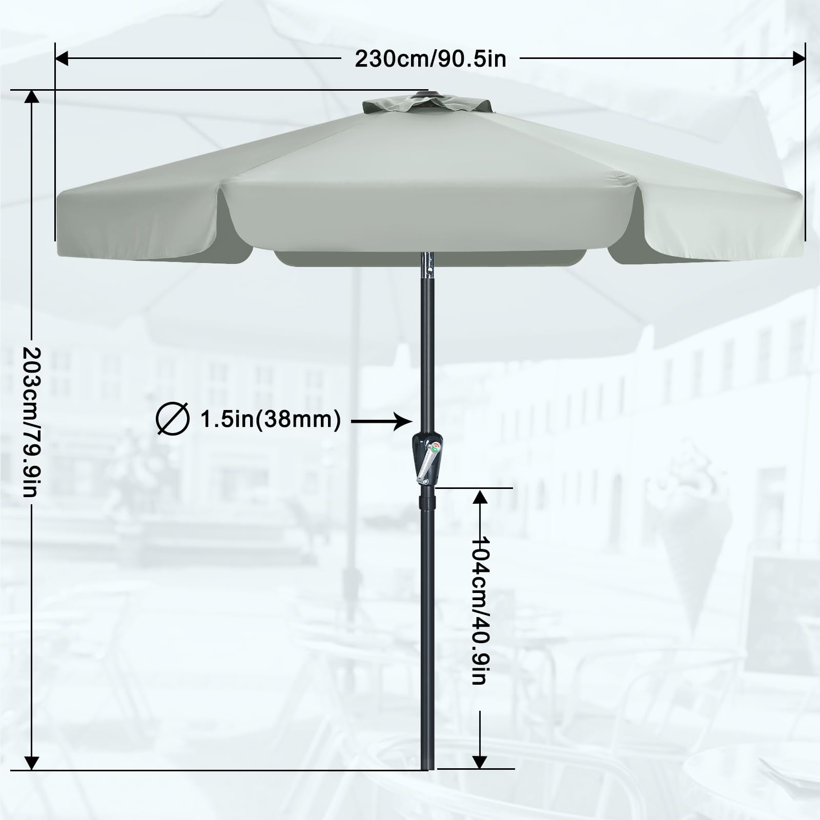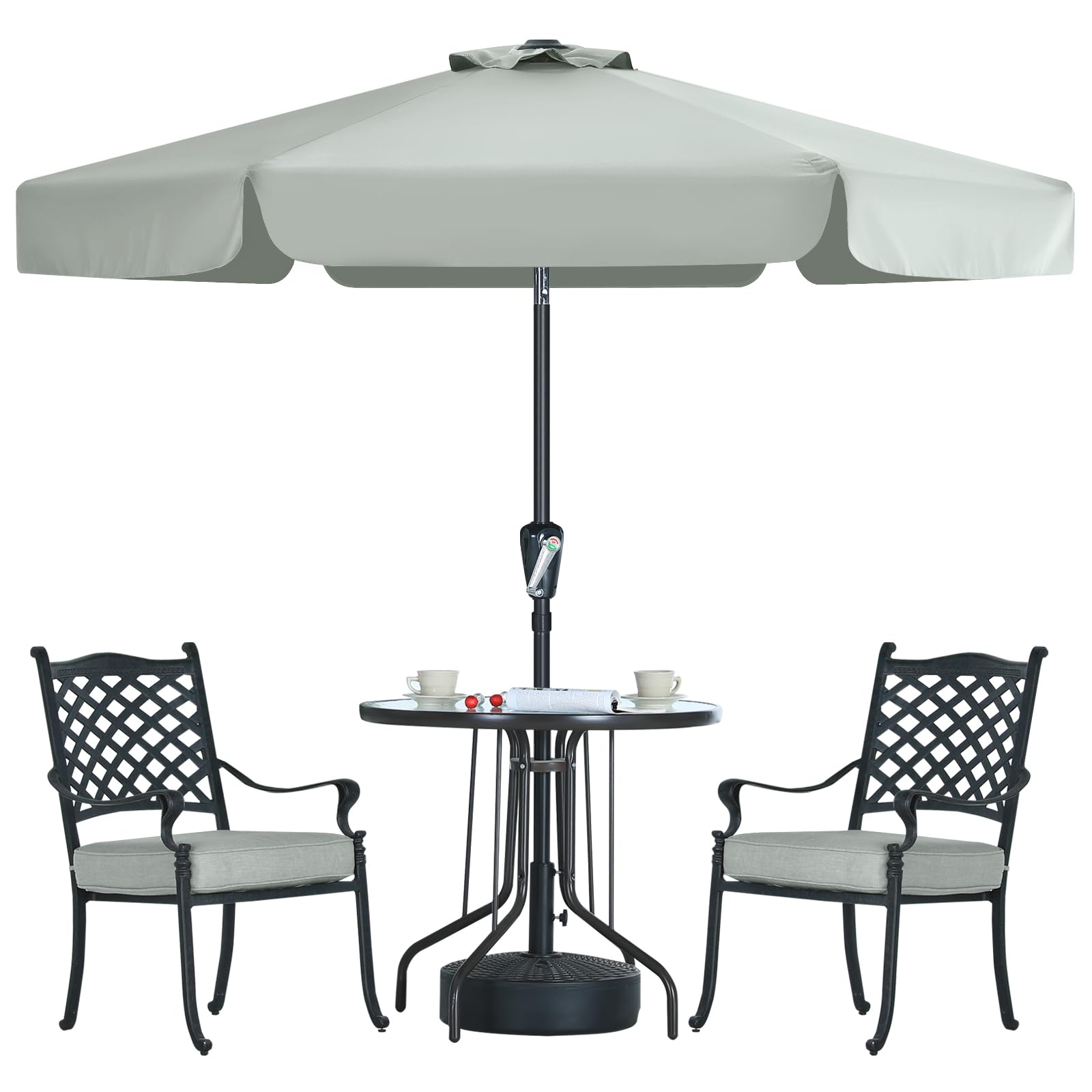 MasterCanopy 230 cm Sonnenschirm neigungsverstellbar, mit schönem Volant, 6 Rippen und Kurbel, für Patio, Garten, Terrasse, Markt, Hellgrau