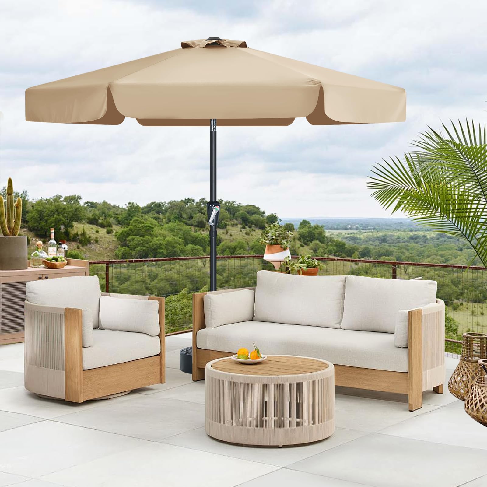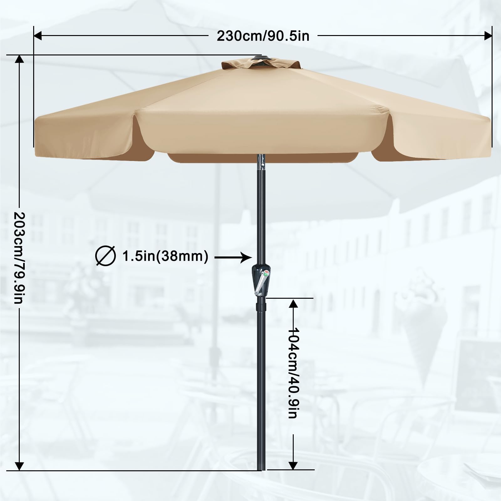 MasterCanopy 230 cm Sonnenschirm neigungsverstellbar, mit schönem Volant, 6 Rippen und Kurbel, für Patio, Garten, Terrasse, Markt, Khaki