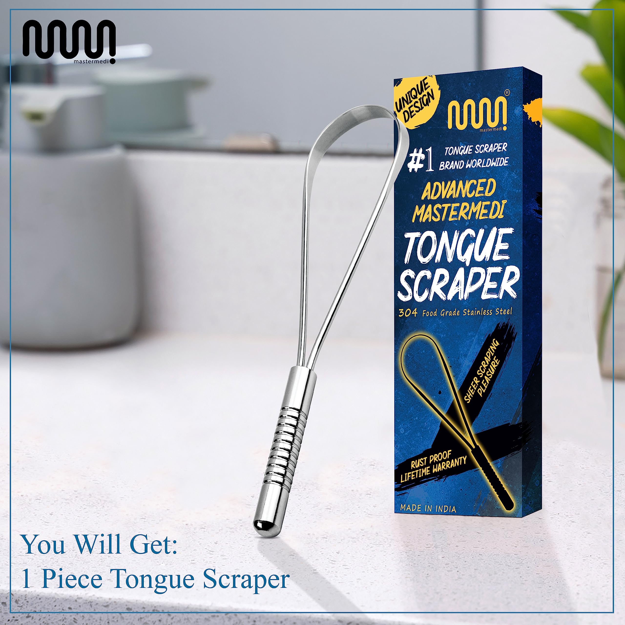MasterMedi Zungenschaber, Mundgeruch Behandlung für Erwachsene und Kinder medizinische Qualität 100% Edelstahl-Zungenschaber für die Mundpflege einfach zu bedienender Zungenreiniger mit für Hygiene
