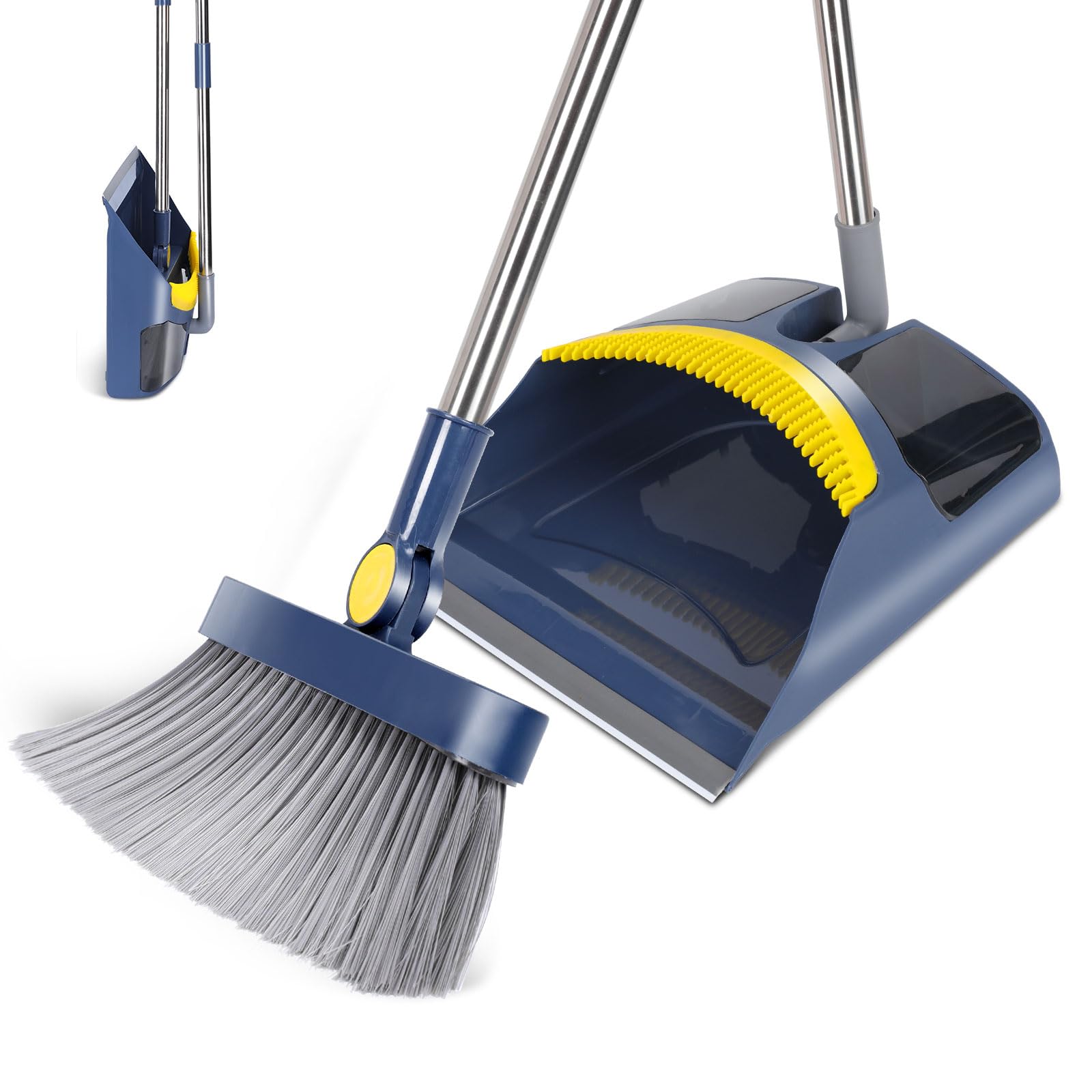 Masthome Besen und Kehrschaufel Set, Handfeger und Schaufel, 121cm Kehrmaschine und Kehrschaufel Combo mit 180 °Drehbar, Aufrechter Kehrset für die Reinigung von Haus Küche Büro, Blau