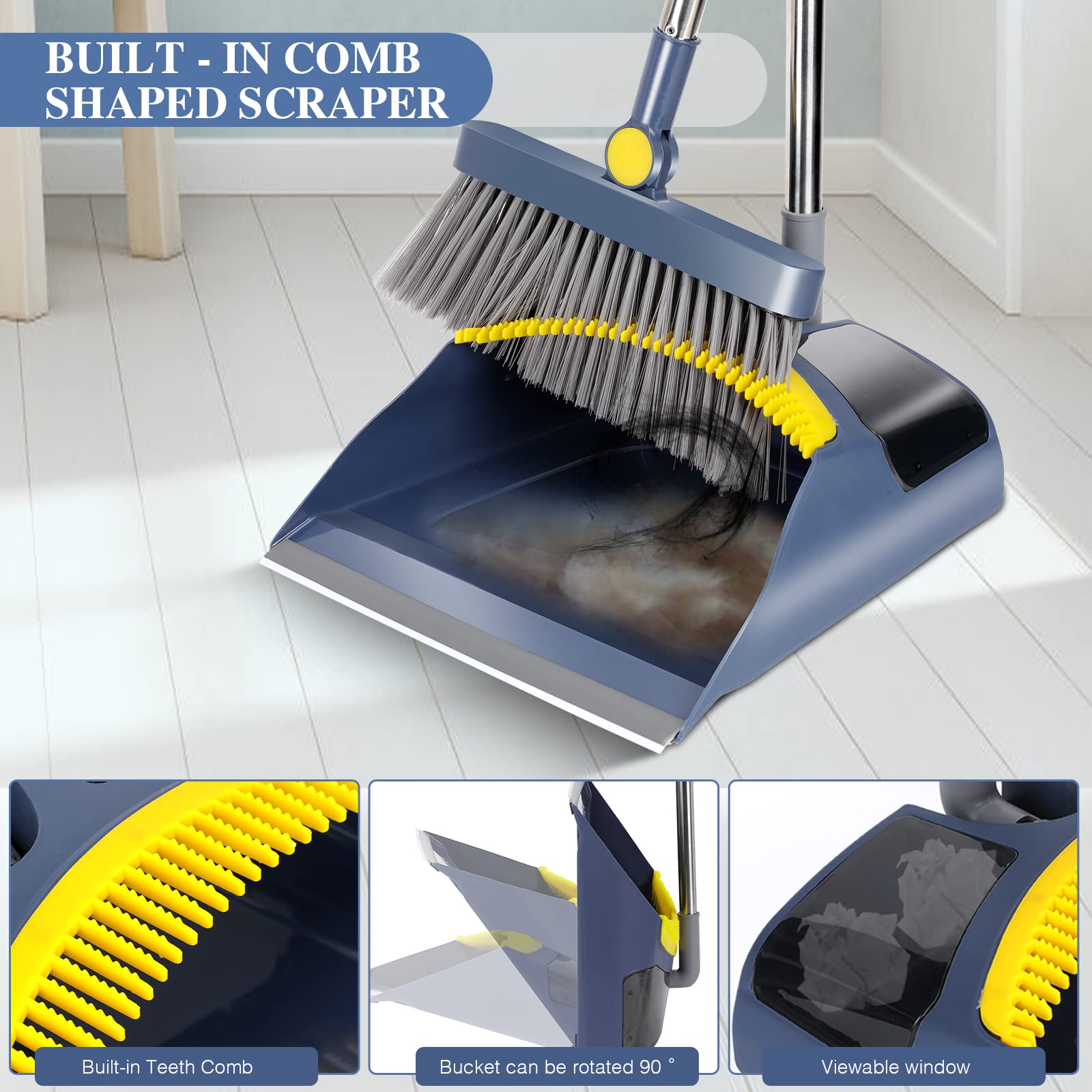 • Eingebaute Kammzähne:Die Kehrschaufel hat eingebaute Kammzähne, um Haare und Schmutz ohne direkten Handkontakt vom Besen zu kratzen, damit Ihre Hände hygienisch bleiben. Ausserdem hat die Kehrschaufel einen Gummistreifen, der perfekt auf den Boden passt und verhindert, dass Müll und Abfälle darunter gekehrt werden. Macht Ihre Reinigungsarbeit einfach und angenehm.