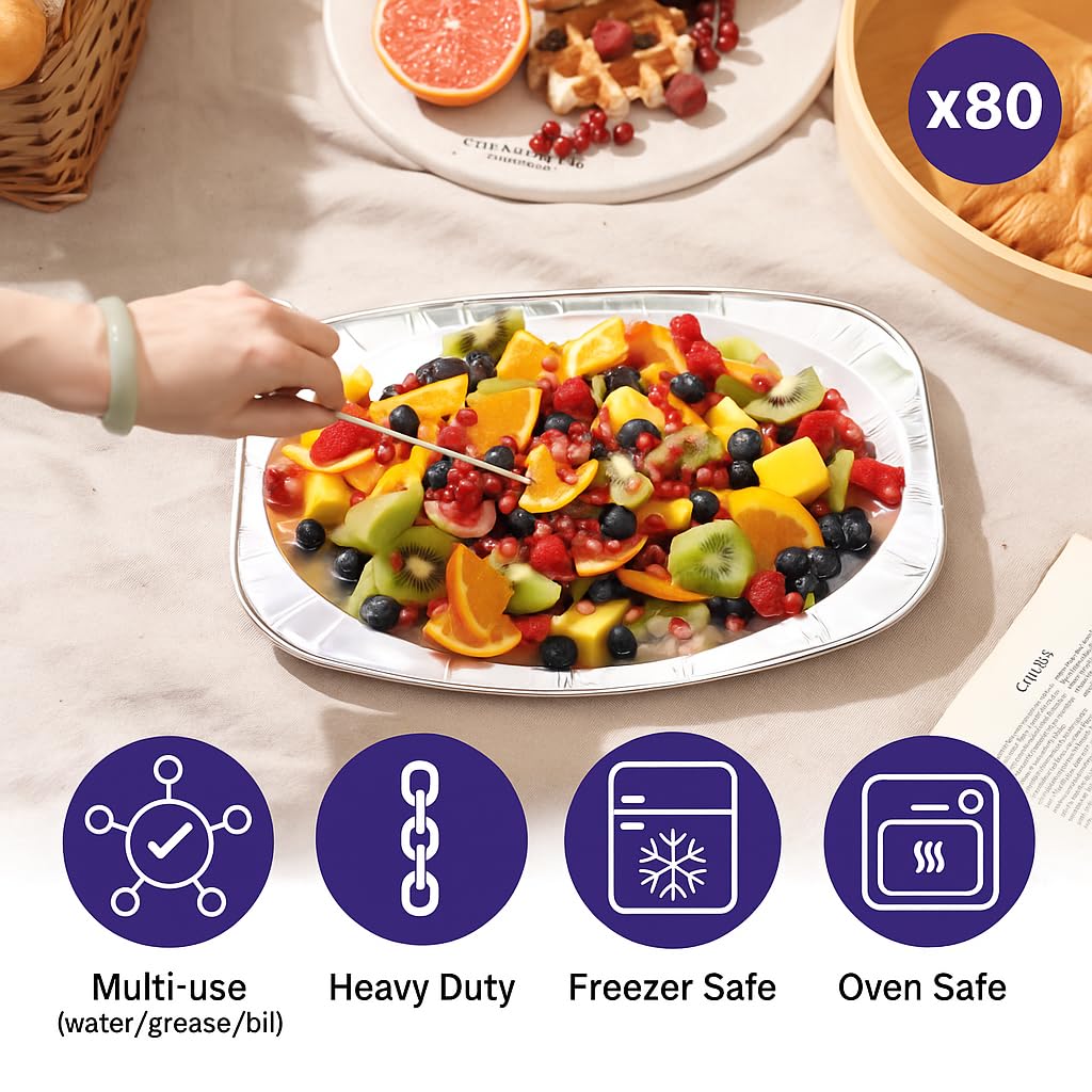 MATANA 80 Einweg Alu Servierplatten Gross, 35x26cm – Servierplatten Einweg, Platten für Buffet, Party & Catering