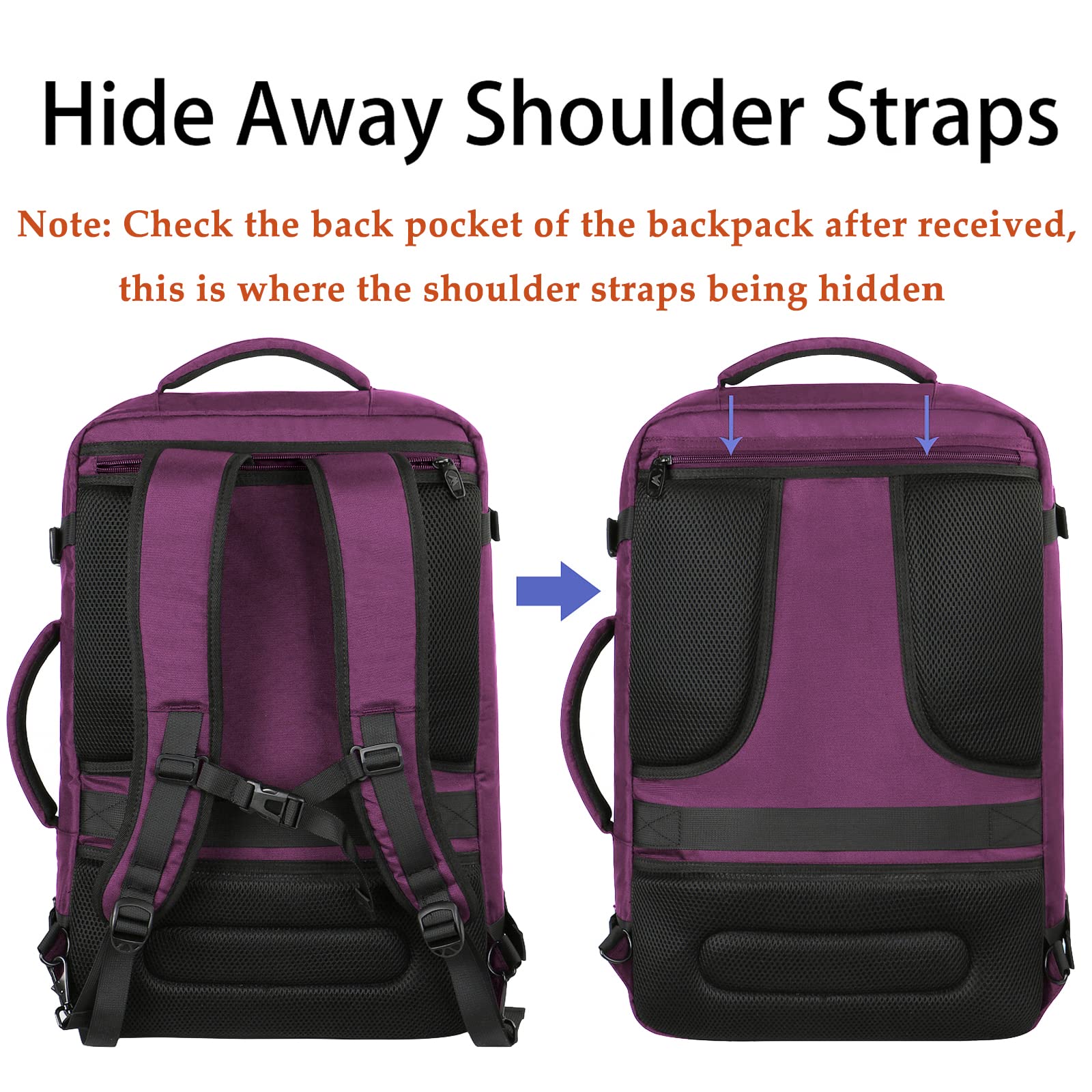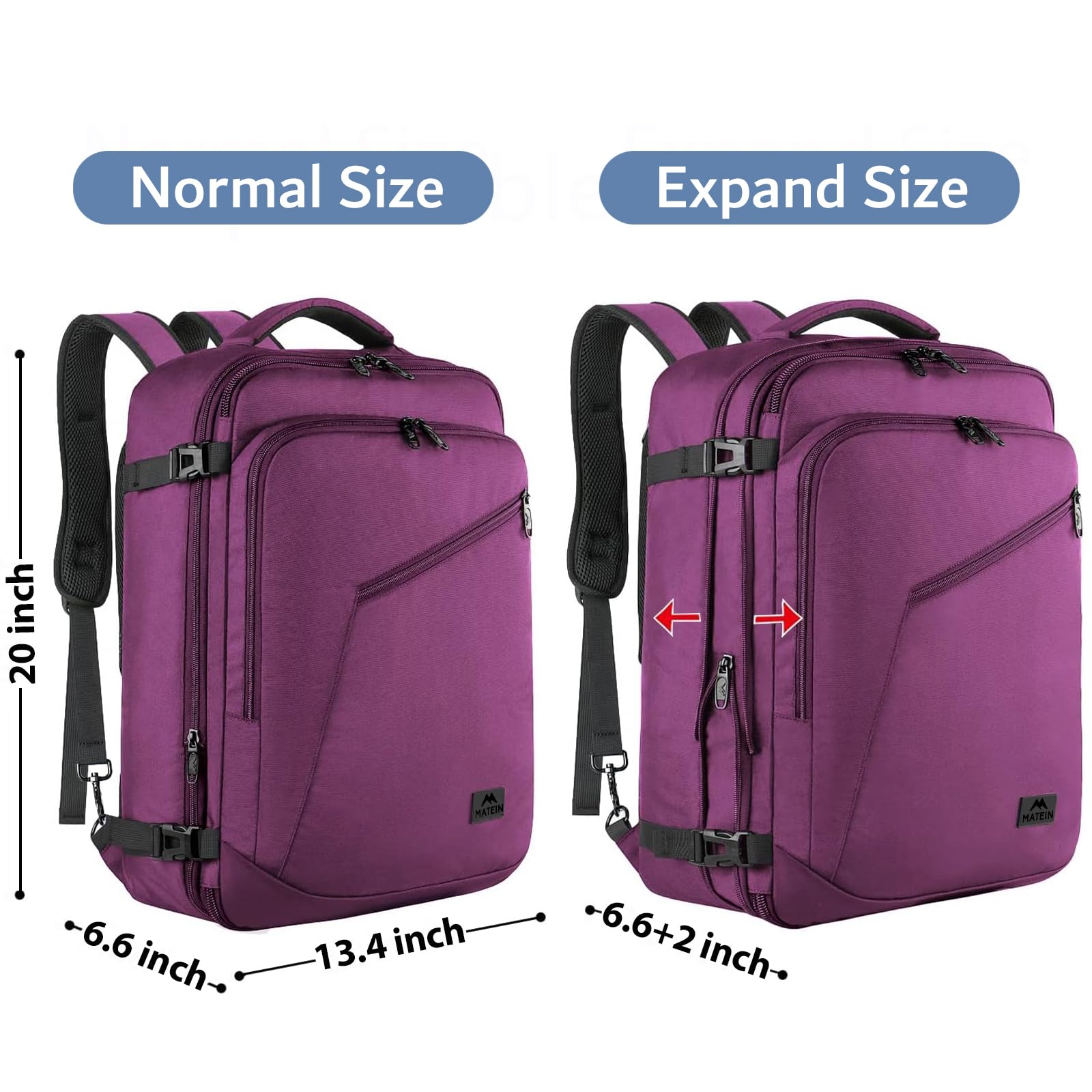 MATEIN Gross Rucksack Herren 50L, Air France Travel Backpack Erweiterbar Arbeitsrucksack Wasserabweisend Reiserucksack 55x35x25cm Carry-On Damen Cabin Bag Tagesrucksack für Bussiness, Violett