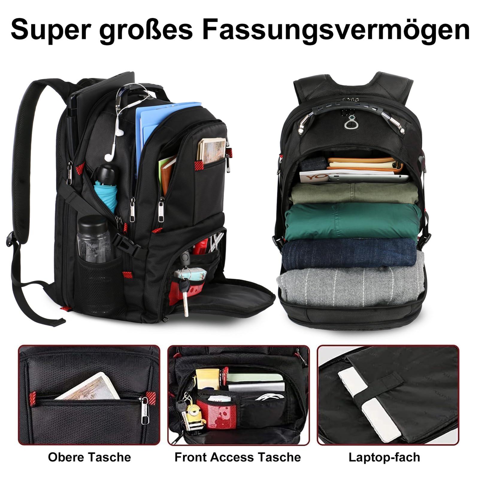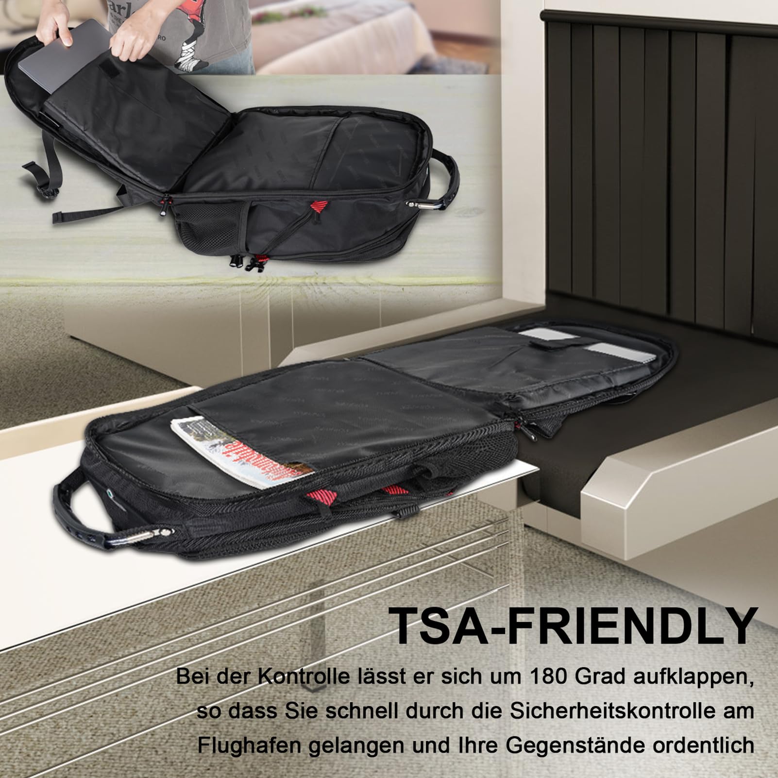 Large men's backpack has 20 pockets, 3 main compartments, 1 padded laptop pocket, 1 zipped front pocket, 2 outer mesh water bottle pockets. As a general rule, you don't have to worry about being too small to carry enough when you go to work or travel. A thick laptop compartment protects your laptop from bumps. Walking is no problem. Many backpackers, travel enthusiasts, students, teachers, office workers, company managers, teenagers, adults, women, men use this versatile backpack.The backpack is equipped with a headphone jack and a USB port, so you can easily charge it and listen to music without worrying about running out of your phone. The associated TSA function is also convenient for traveling and can be opened freely by 90 to 180 degrees. Luggage straps allow you to attach your backpack to a suitcase or suitcase. Slide it over the upright luggage handle to make it easy to access. Carry backpack with multiple layers of foam padding to support air convection, ventilation and heat dissipation Comfortable, wide mesh shoulder straps and generous foam padding take the burden off your shoulders Use as a large laptop bag, junior large school bag, large business backpack. Ideal for work, commuting, weekend trips, air travel, hiking, camping. Capacity: 50 liters, padded separate laptop compartment for 14, 15, 15.6, 17, 17.3" laptop. MATEIN was founded in 2014 and has sold millions of products to customers worldwide in just a few years. At Matein, we offer high-quality backpacks at affordable prices so that every customer can find a backpack they like to wear. Creating a good product inspires people to explore new worlds with enthusiasm and gain new insights