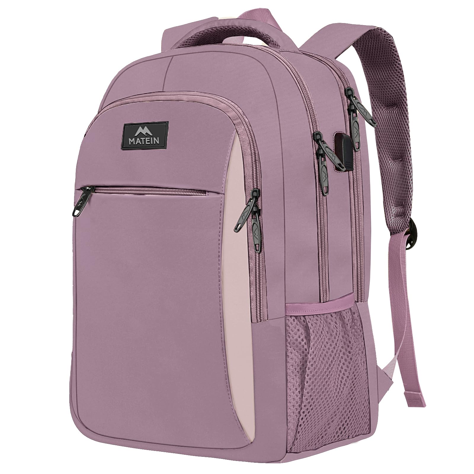 MATEIN Laptop Rucksack Damen, 17,3 Zoll Schulrucksack und Laptoptasche mit USB Ladeanschluss, Anti Diebstahl Business Rucksack für Arbeit, Reisen, Schultasche College Geschenk Männer, Lila