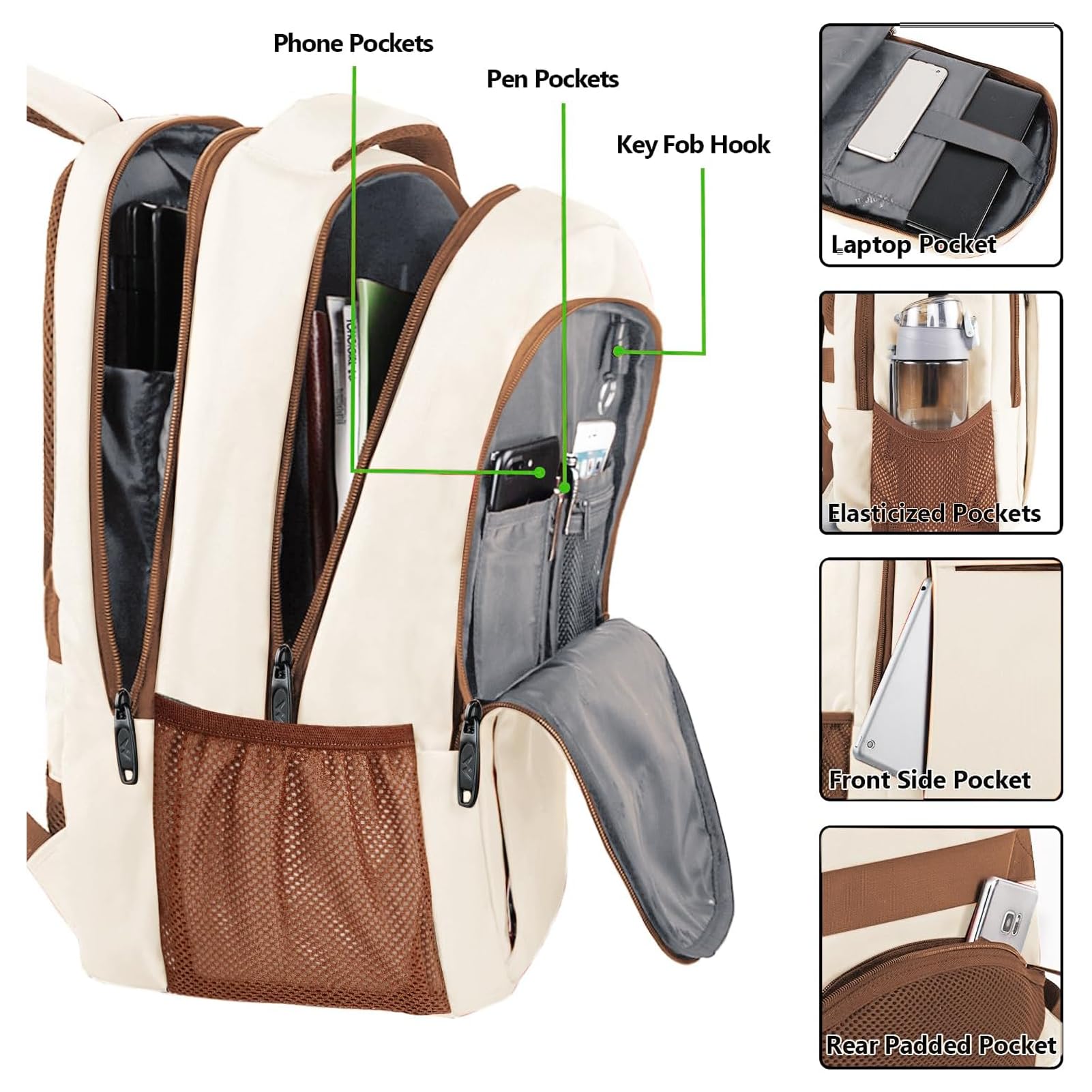 MATEIN Business Laptop Rucksack 15,6 Zoll Reise Laptoptasche mit USB Ladeanschluss Wasserabweisend Daypack Arbeit College Computer Herren Damen, Beigebraun