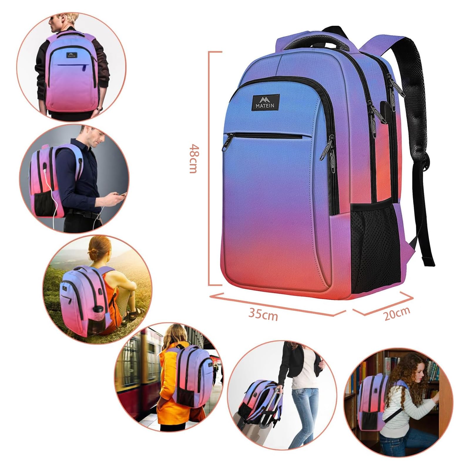 MATEIN Rucksack Herren, Gross Laptop Rucksack 17,3 Zoll Schulrucksack Laptoptasche mit USB Ladeanschluss Anti Diebstahl Business Arbeit Reisen Rucksack Teenager Notebook College Tech Damen, Schwarz