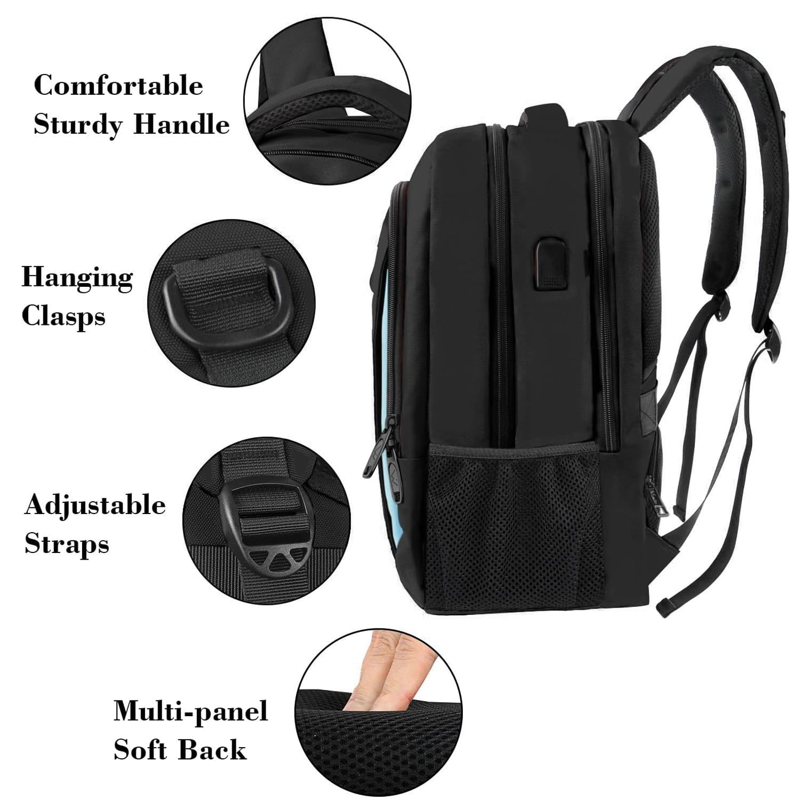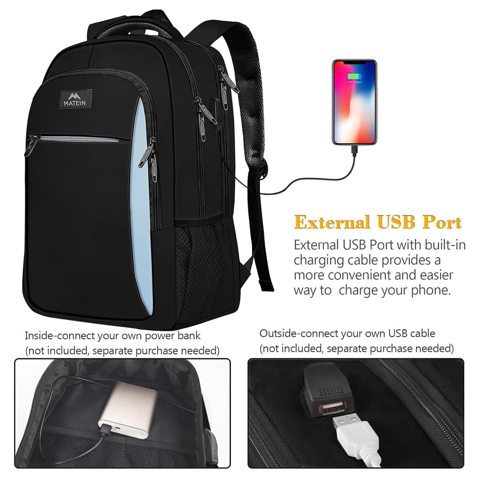 MATEIN Business Laptop Rucksack 15,6 Zoll Reise Laptoptasche mit USB Ladeanschluss Wasserabweisend Daypack Arbeit College Computer Herren Damen, Blauschwarz