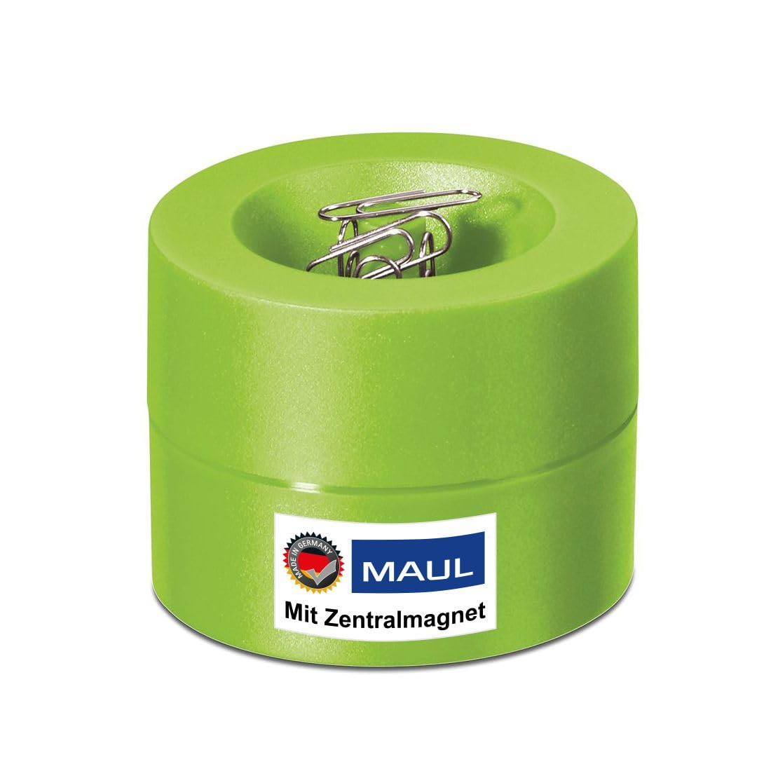 MAUL Klammernspender MAULpro | Schreibtisch Organizer zur Aufbewahrung von Büroklammern | magnetischer Ordnungshelfer für Büro, zu Hause und Arbeitszimmer | inklusive 15 Klammern | Grün