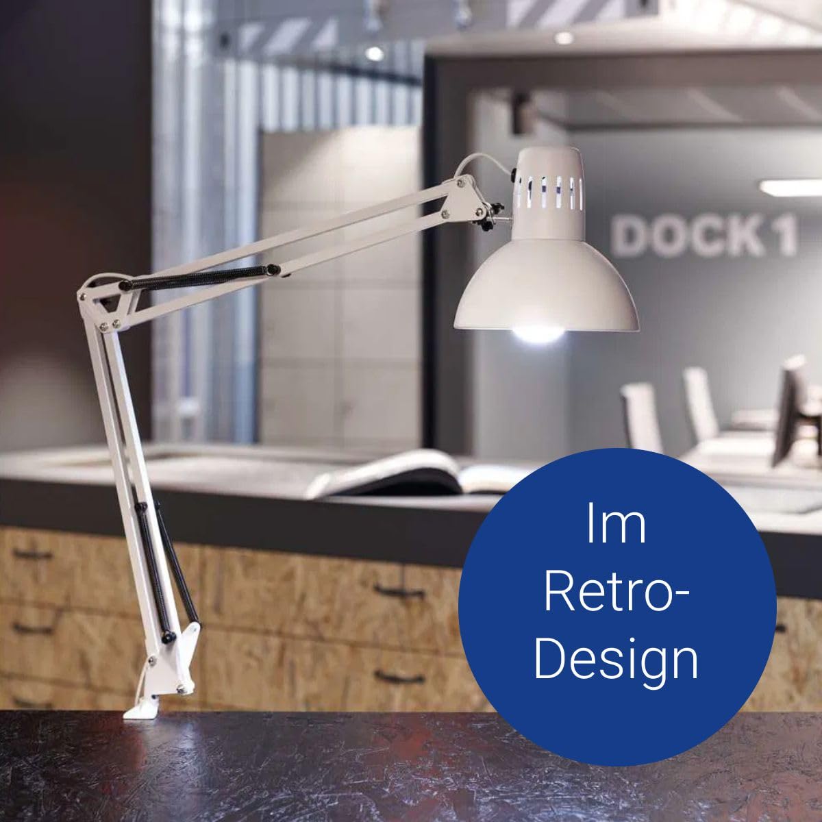Erfolgreicher Design-Klassiker - Hohe Energie-Effizienz - Extrem sparsam: Moderne LED-Technik - Praxiserprobt und leistungsstark, flexibel in alle Richtungen einstellbar - Stabiler Fuss - Garantiert: Null Stromverbrauch im ausgeschalteten Zustand - Technisches Sicherheitskonzept Made by MAUL - Professionelle Arbeitsplatzleuchte, hohe Lichtqualität - Smart Home fähig mit passendem Leuchtmittel - Reflektor für optimale Lichtausnutzung - Lampenfassung: Sockel E27 - Austausch Lichtquelle möglich - Verpackung recycelbar Beleuchtungsstärke Leuchte: 1.840 Lux bei 35 cm Abstand Farbtemperatur (je Lichtquelle): 3.000 Kelvin (warmweiss) Anzahl Lichtquellen: 1 Energieeffizienzklasse (je Lichtquelle): D (Spektrum A bis G) Gewichteter Energieverbrauch (je Lichtquelle): 7 kWh/1000 h Lebensdauer L70B50 (je Lichtquelle): 25.000 h Nutzlichtstrom (je Lichtquelle): 900 Lumen Fuss: Klemmfuss Material: Kopf: Metall - Arm: Metall - Klemmfuss: Metall Masse: Höhe: 44 cm - Kopf: Ø 17 cm - Arm: Länge unten 35 cm, Länge oben 35 cm - Fuss: Klemmweite: 0 - 5.5 cm Bewegung: Kopf: Neigbar, Drehbar - Arm: Neigbar, Drehbar Position Schalter: Kabel