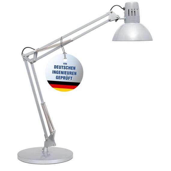 Erfolgreicher Design-Klassiker mit überzeugendem Preis-/Leistungsverhältnis. Praxiserprobt und leistungsstark, flexibel in alle Richtungen einstellbar. Besonders standfest: Schwerer Standfuss erlaubt weiten Auszug des Armes. Professionelle Arbeitsplatzleuchte, hohe Lichtqualität. Smart Home fähig mit passendem Leuchtmittel. Technisches Sicherheitskonzept Made by MAUL. Geeignet für 9,5 Watt LED-Leuchtmittel (Sockel E27). Reflektor für optimale Lichtausnutzung. Ohne Auszugbegrenzung des Armes. Stabiler Standfuss. Fuss:Standfuss. Material:Kopf: Metall - Arm: Metall - Fuss: Beschwerungseinlage, schreibtischschonende Unterlage. Masse:Höhe: 47 cm - Kopf: Ø 17 cm - Arm: Länge unten 35 cm, Länge oben 35 cm - Fuss: Ø 23 cm. Bewegung:Kopf: Drehbar, Neigbar - Arm: Drehbar, Neigbar. Position Schalter:Kabel. Umweltschonende und sichere Verpackung, recycelbar. Technisches Sicherheitskonzept Made by MAUL: Keine Leuchte oder Lampe wird in unser Programm aufgenommen, wenn sie nicht intensive Tests bestanden hat. Unser Team aus den Bereichen optischer, elektronischer und mechanischer Entwicklung sowie der Fertigungstechnik gewährleistet die Sicherheit der Tischleuchte MAULstudy.