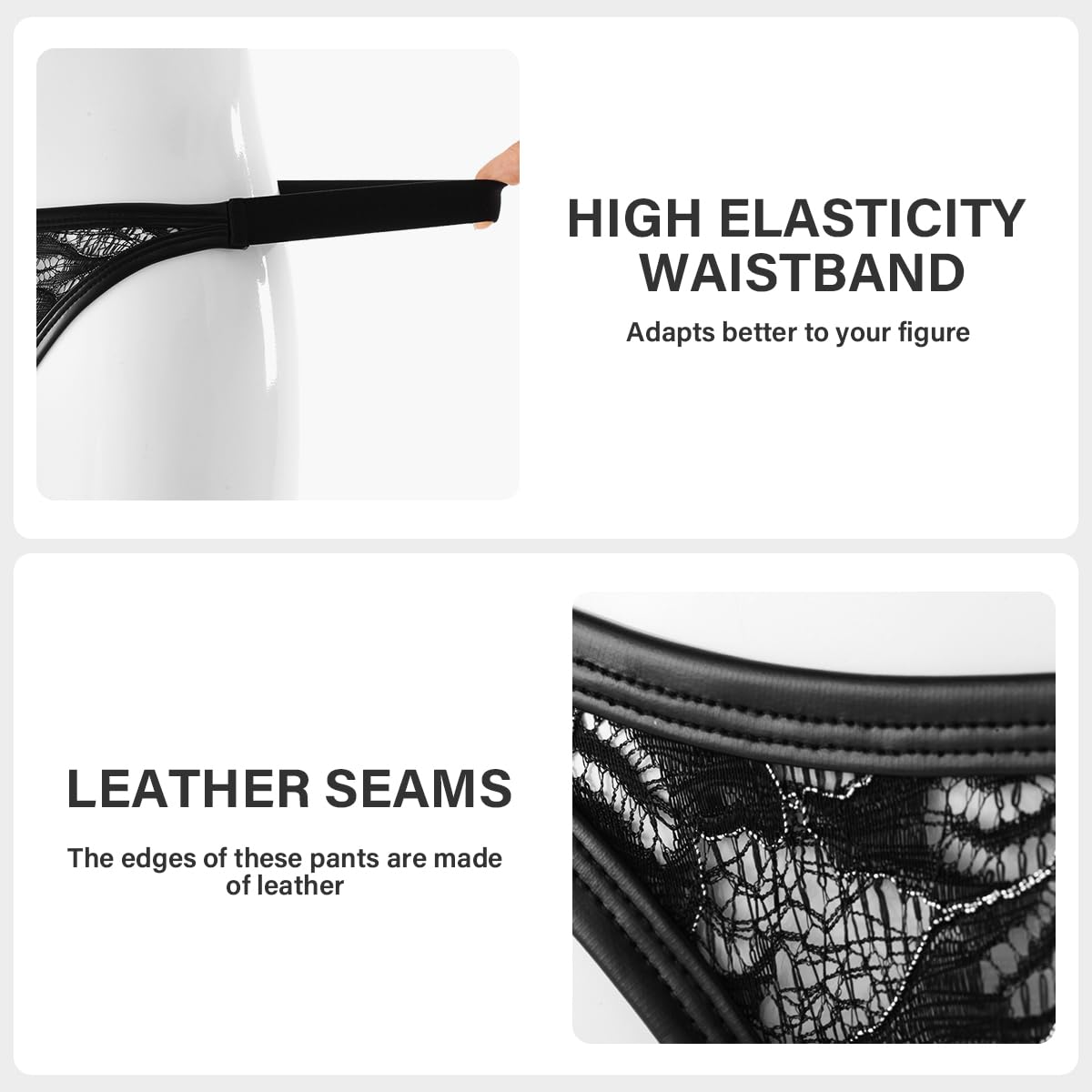 • Die Spitzenstoffe sind weich und mit feinen Silberfäden verziert. Die Kombination von transparenten und durchbrochenen Elementen unterstreicht Ihre verführerische männliche Ausstrahlung.