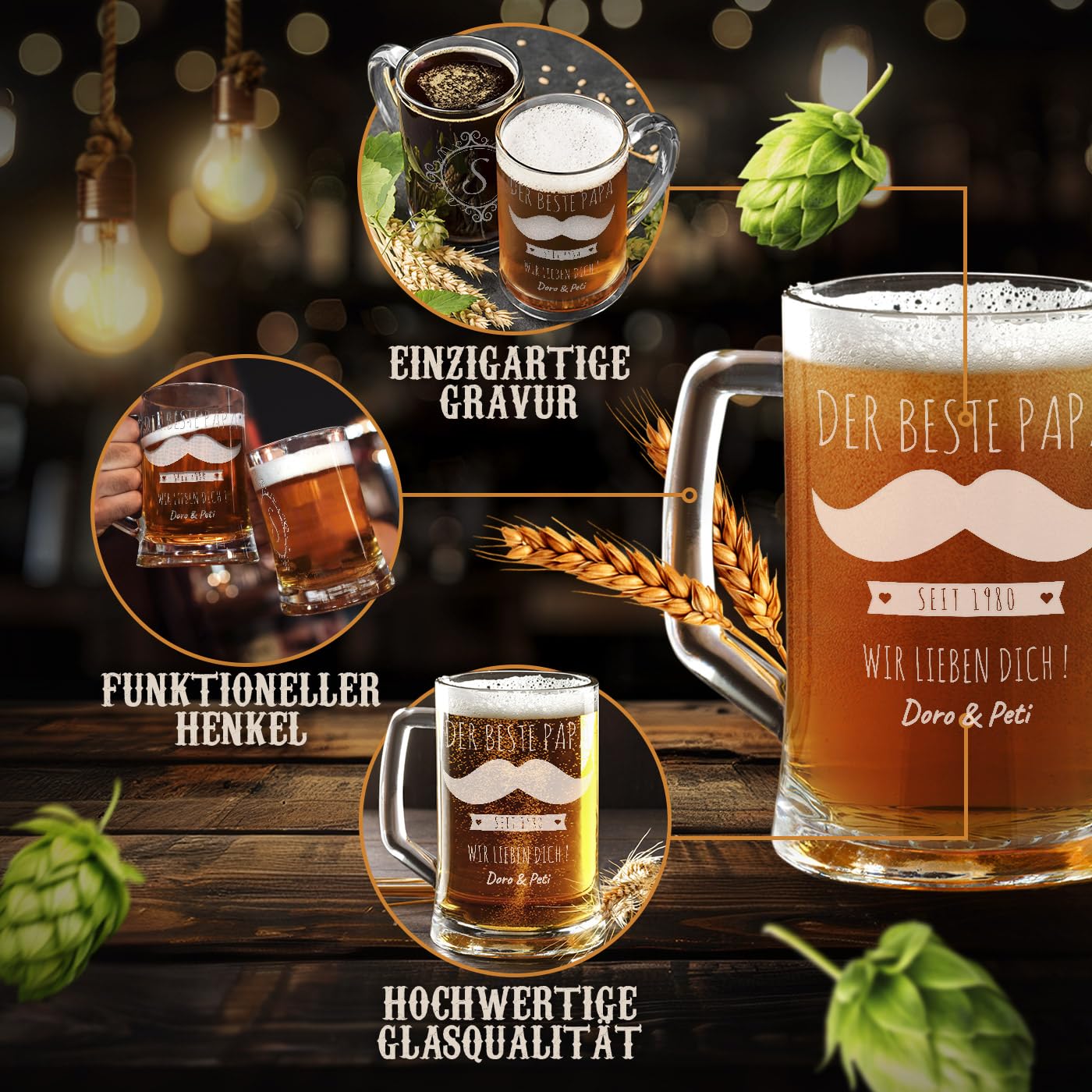 Maverton Bierkrug mit Gravur - personalisiert - 500 ml - Geburtstagsgeschenk für Herren - Geschenkidee für Bierfreunde - Weihnachtsgeschenke - Schnurrbart