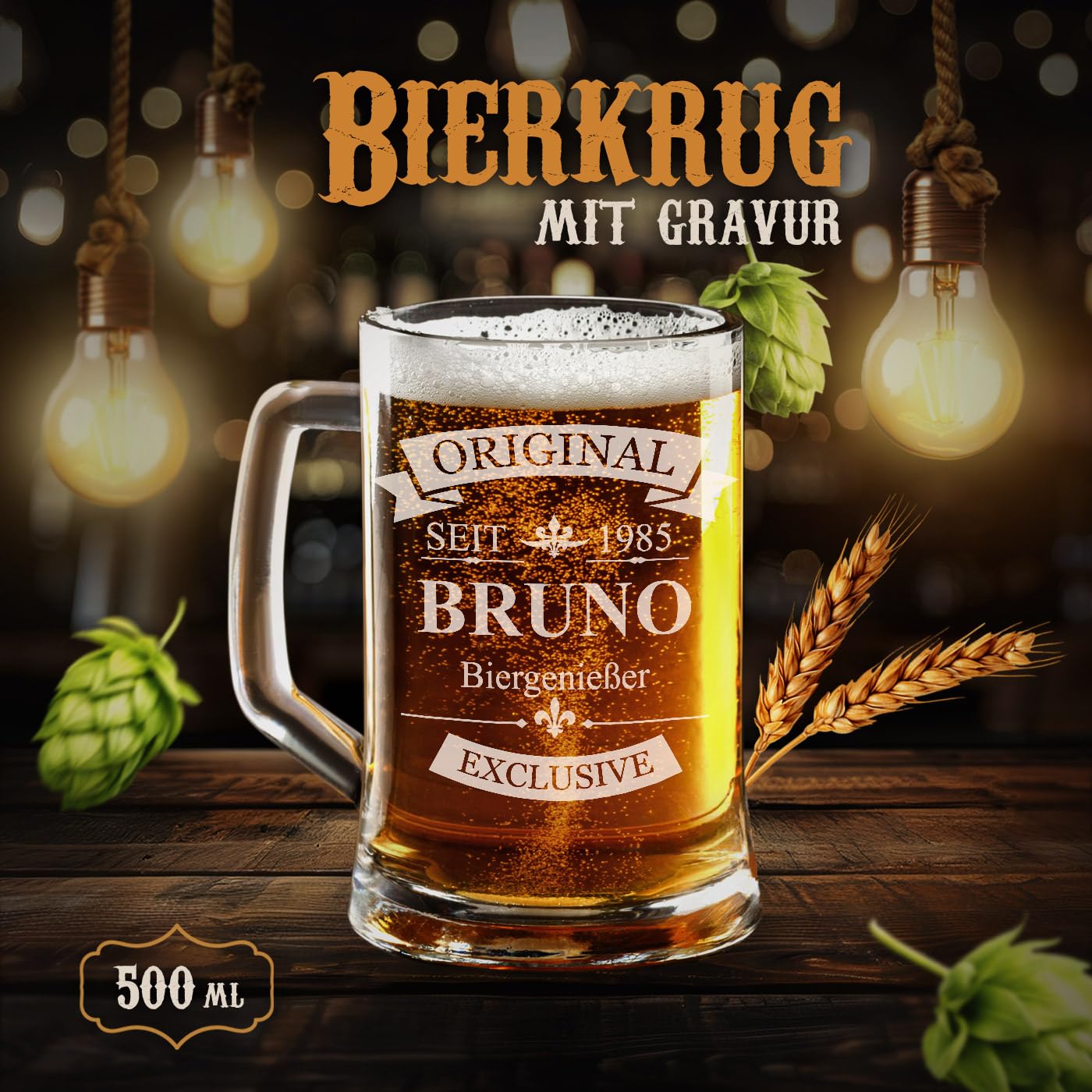 Maverton Bierkrug mit Gravur - Personalisierte Geschenke Männer - 500 ml - Geburtstagsgeschenk für Herren Bierglas Papa - Geschenkidee für Bierfreunde - Weihnachtsgeschenke - Original
