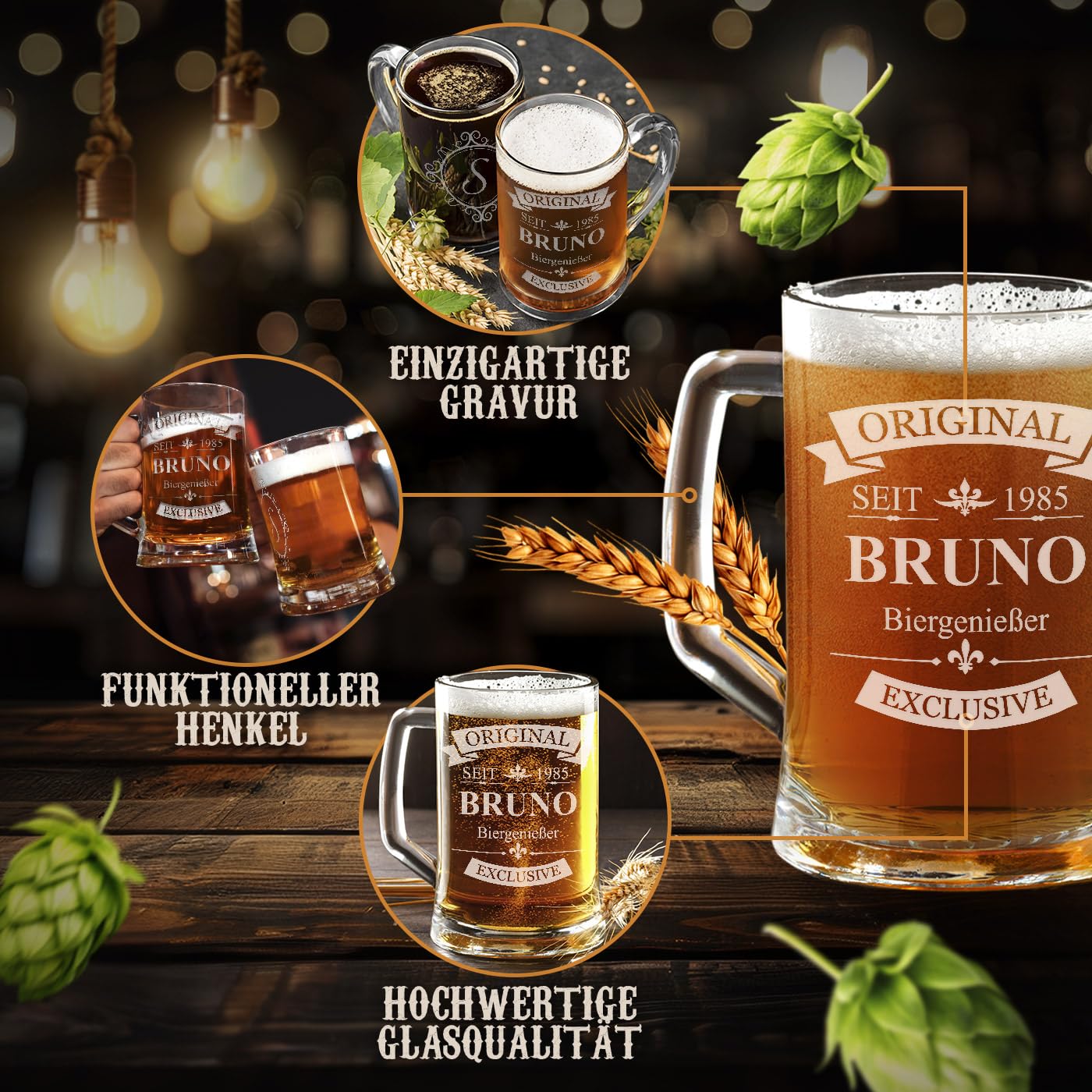 Präsentieren Sie den Bierliebhabern in Ihrem Leben das ultimative Geschenk mit dem Maverton Bierkrug. Dieser Bierkrug, auch bekannt als papa bierglas, ist der perfekte Weg, um Ihre Wertschätzung für den besten Papa zu zeigen. Es ist ein hervorragendes Vatertagsgeschenk, besonders wenn Ihr Vater ein Fan von Biergeschenken für Männer ist. Der Bierkrug ist ein vollständiger füllkrug mit Bier der Kapazität 0,5L, ideal für diejenigen, die die biergläser 0,5 bevorzugen. Für diejenigen, die kleinere Portionen bevorzugen, haben wir auch biergläser 0,3 im Angebot. Dieser Bierkrug ist auch personalisiert mit einer Gravur, die ihn zu einem der besten personalisierte geschenke für Männer macht. Es ist das perfekte Geburtstagsgeschenk für Männer und ist sicherlich ein Highlight unter den Geschenken für Männer Geburtstag. Die Gravur auf dem Bierglas macht es zu einer einzigartigen Geschenkidee und ist ideal für jeden Anlass, sei es ein Vatertag, ein Geburtstag oder nur eine besondere Überraschung. Der Bierkrug ist nicht nur ein praktisches Geschenk, sondern auch ein Stück Handwerkskunst, das in jeder Hausbar oder jedem Regal gut aussieht. Dieser Bierkrug ist nicht nur ein fantastisches Biergeschenk, sondern wird sicherlich auch als das beste Vatertagsgeschenk für Papa Bier geschätzt. Egal, ob Sie nach einem personalisierten Bierglas, einem Bierkrug mit Gravur oder einem Bierglas Vatertag suchen, dieser Bierkrug ist die perfekte Wahl. Bei Maverton sind wir stolz auf unsere hochwertigen Produkte und den exzellenten Kundenservice. Gönnen Sie sich oder einem geliebten Menschen heute diesen wunderschönen Bierkrug.