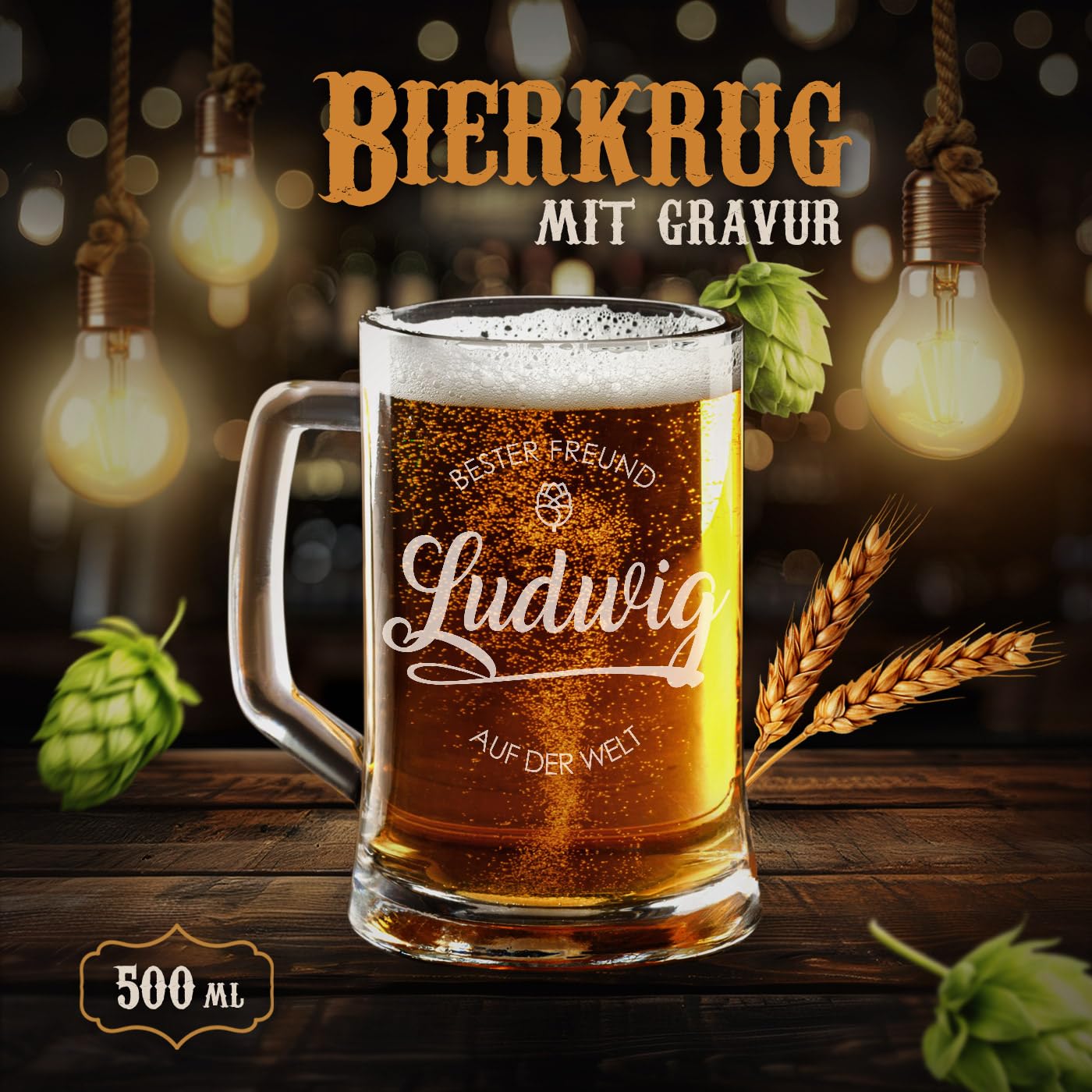Maverton Bierkrug mit Gravur - Personalisierte Geschenke Männer - 500 ml - Weihnachtsgeschenke - Geburtstagsgeschenk für Herren Bierglas Papa - Geschenkidee für Bierfreunde - Freund