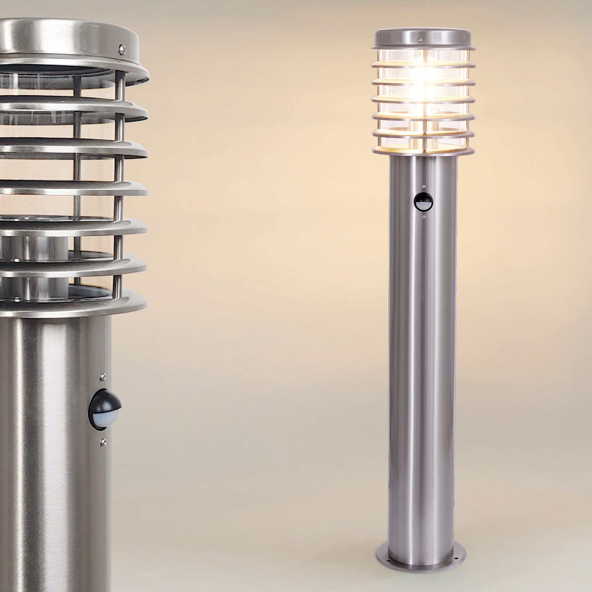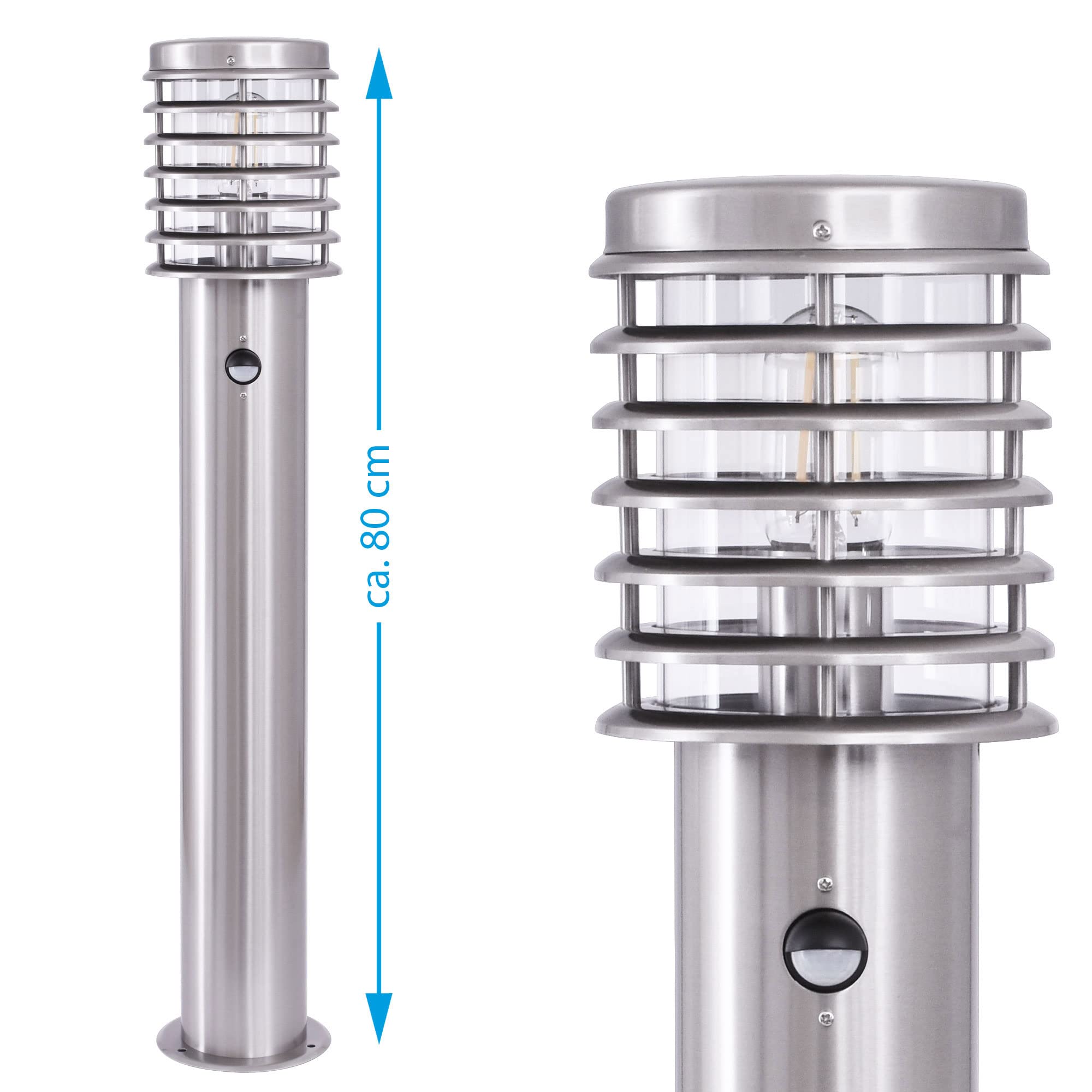max K O M F O R T Aussenleuchte E27 Aussenlampe Standleuchte mit Bewegungsmelder Edelstahl 252D1-800SN Wegeleuchte IP44 Gartenlampe