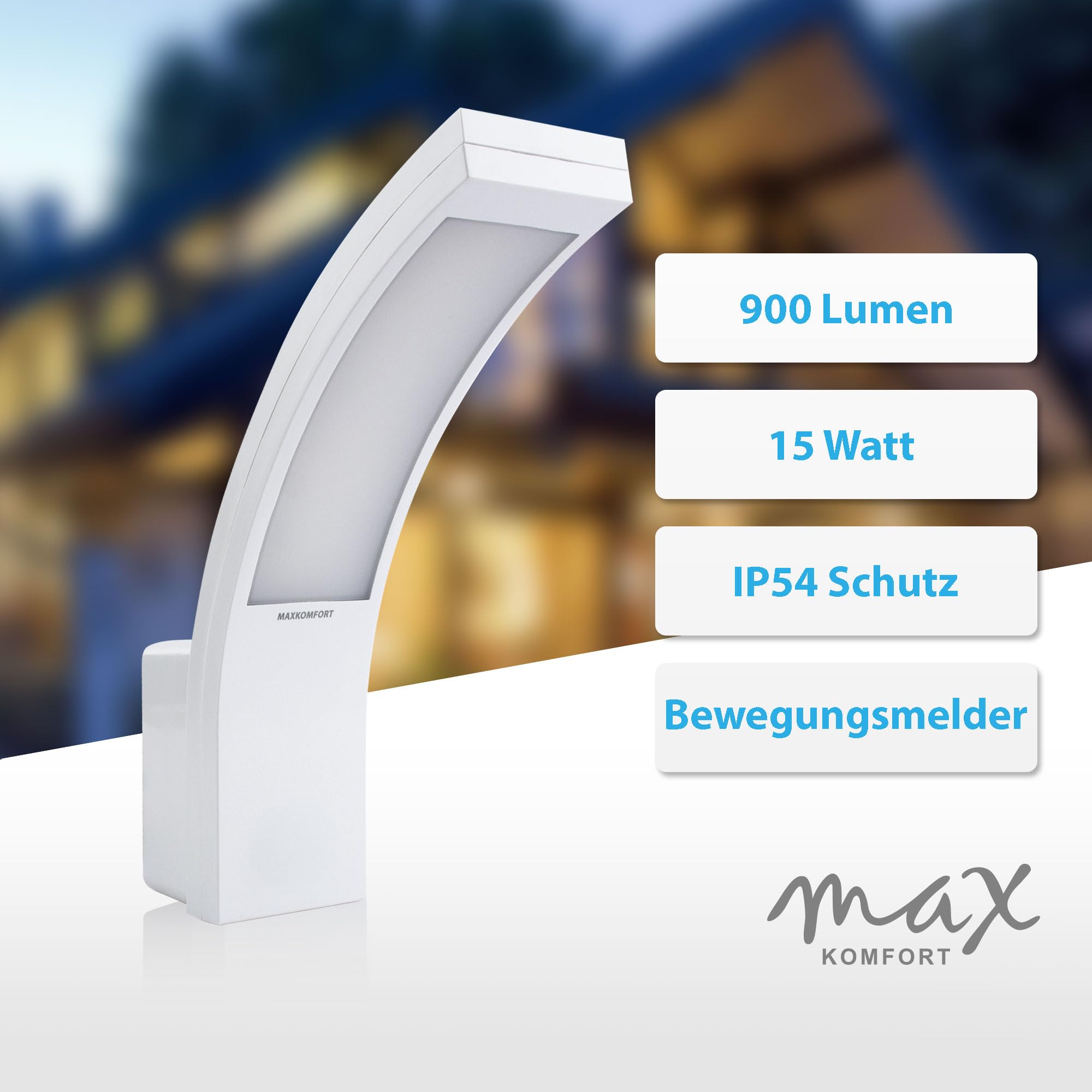 max K O M F O R T LED Aussenleuchten 15W IP54 4000K weiss | Wand-leuchte Wandlampe neutralweiss Flurleuchte Fluter modern PIRIT-BK-0