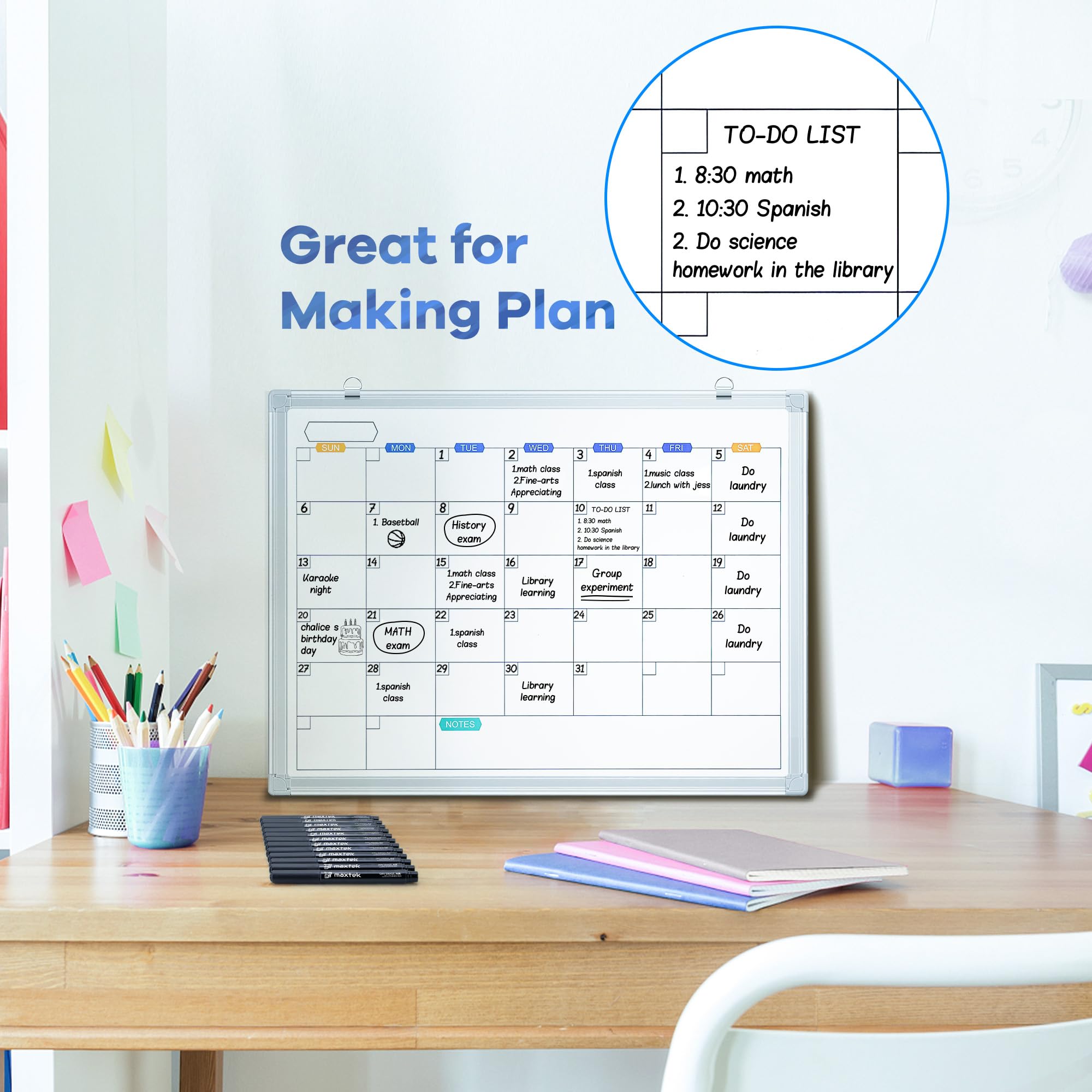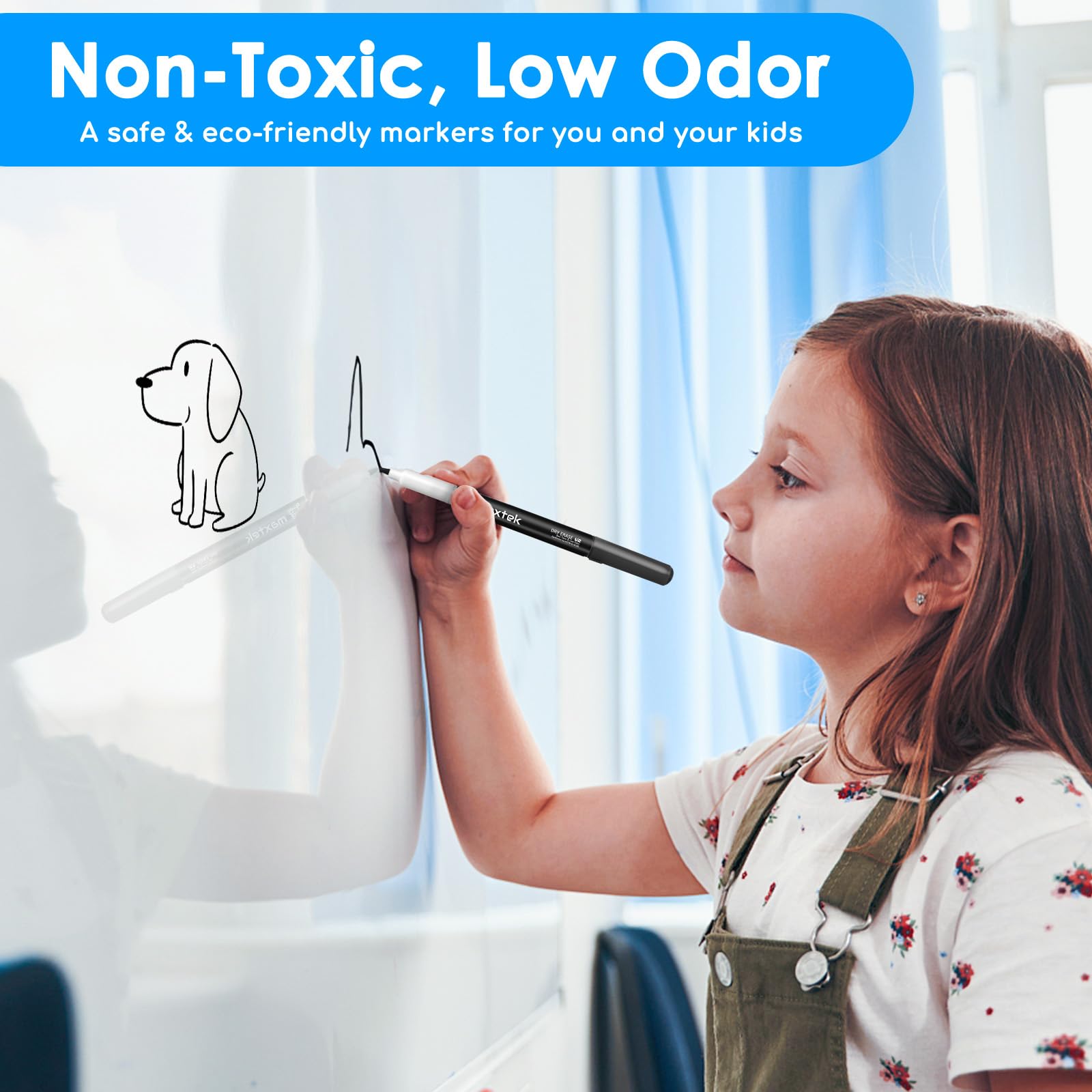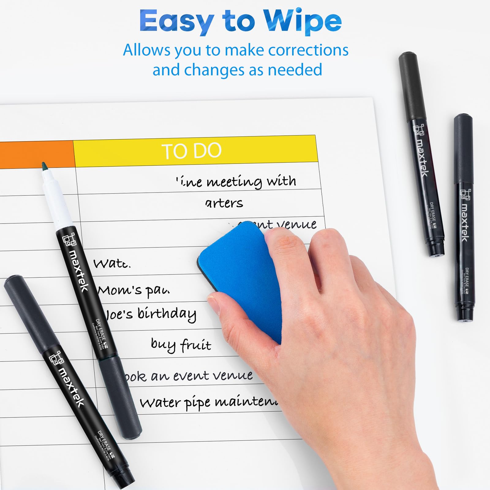 maxtek Whiteboard Stifte, 12 stücke-Schwarz Magnetische, Trocken Abwischbare Marker, Whiteboard Marker mit Feiner Spitze, Folienstift Abwischbar Geruchsarmer Erase Marker mit Radiergummi
