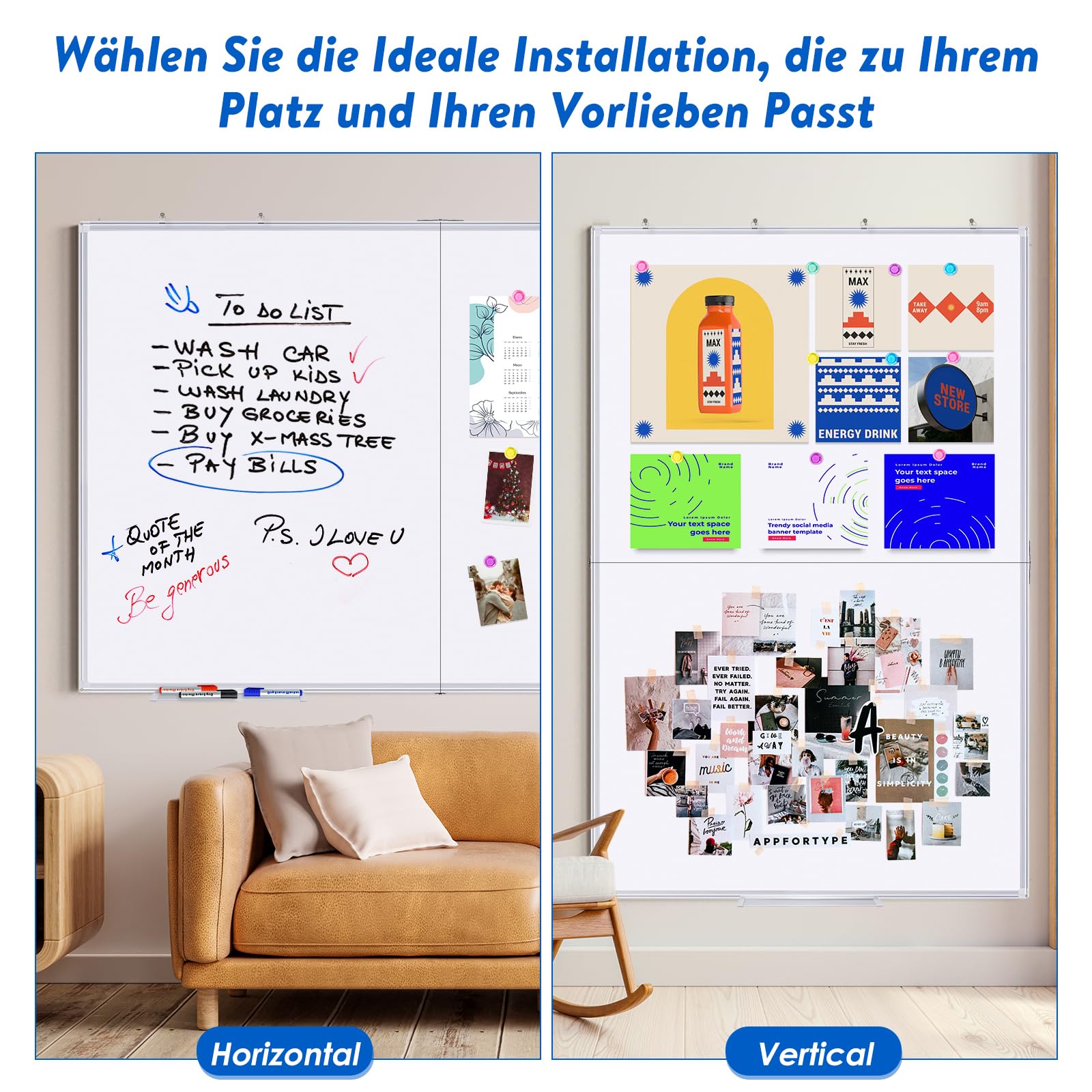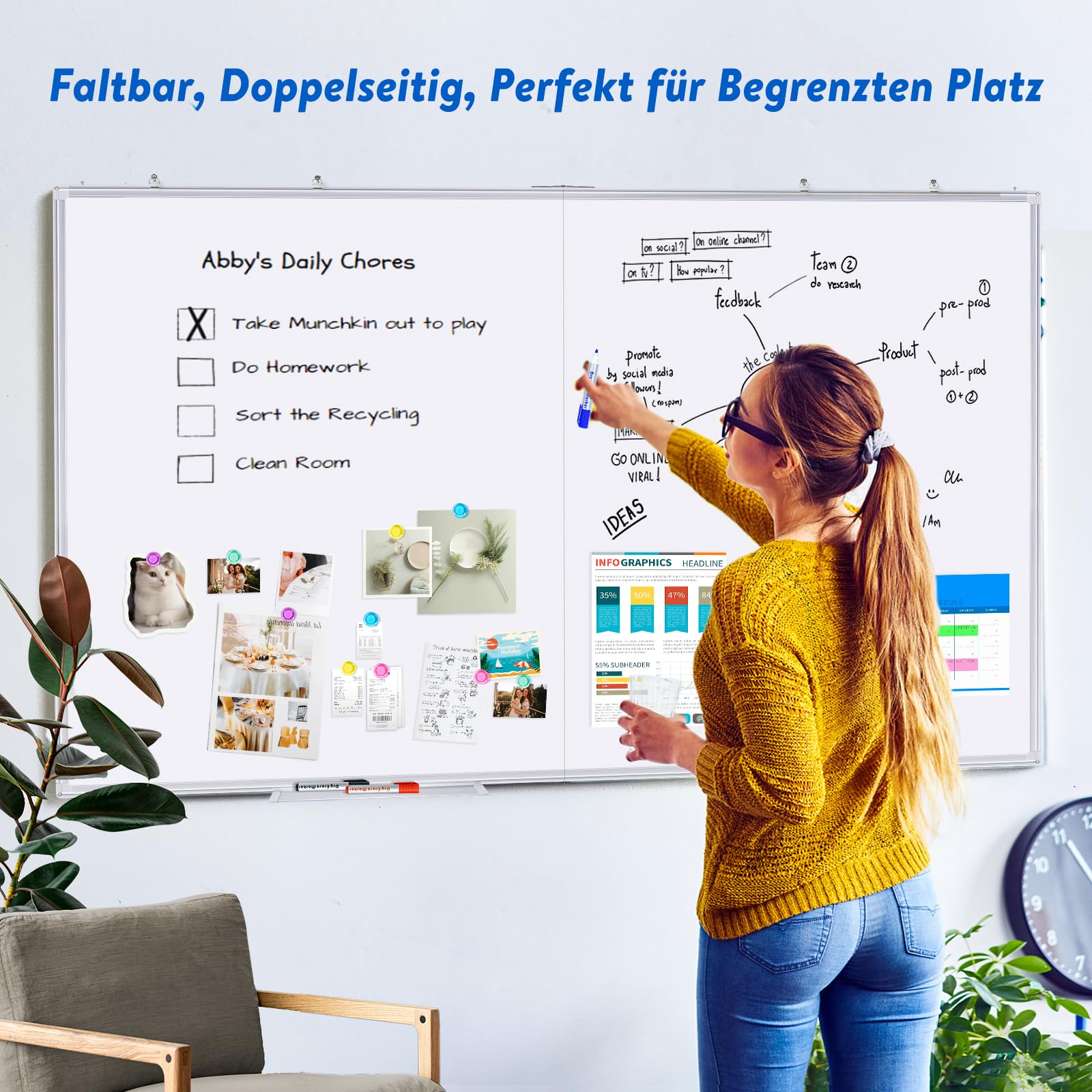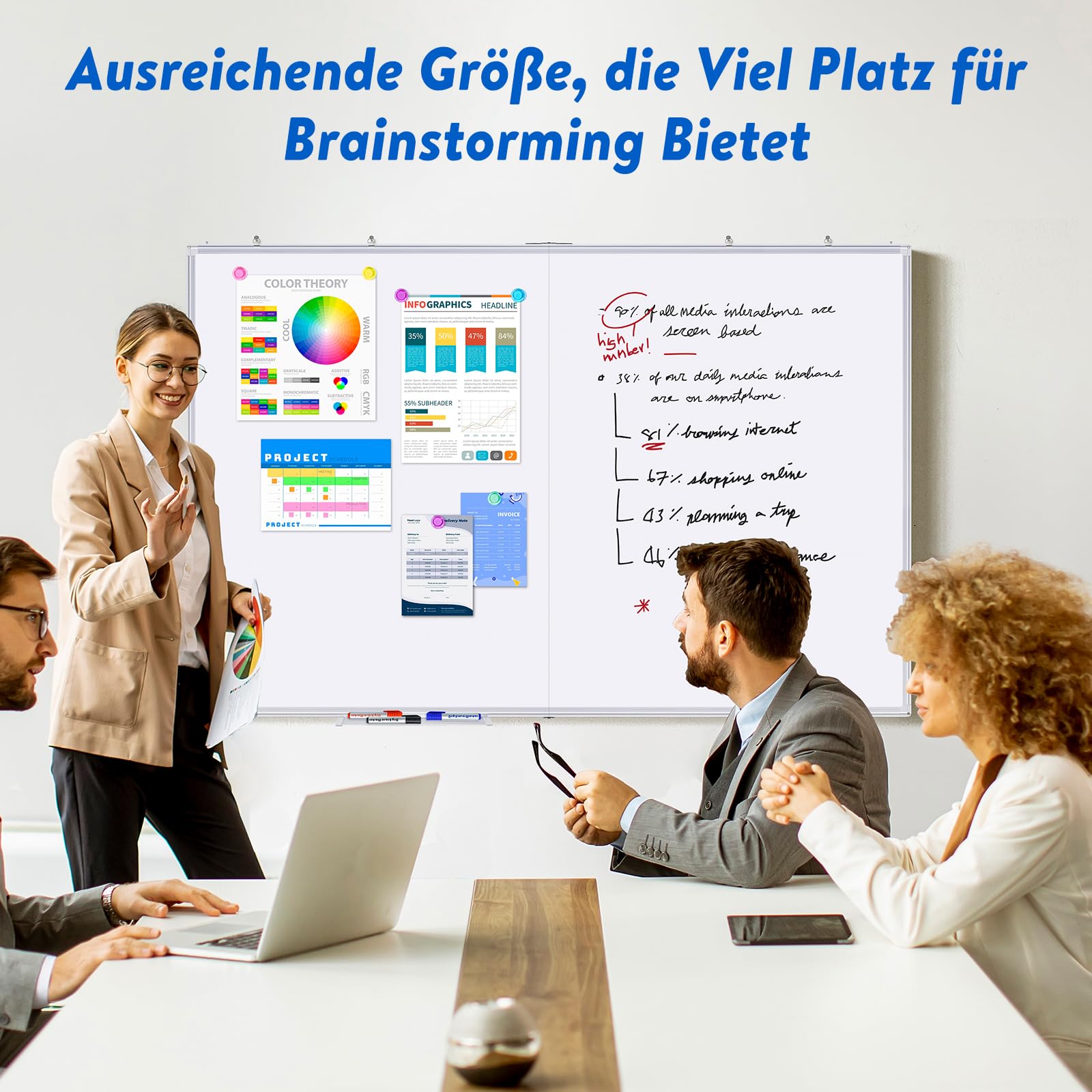 maxtek Whiteboard Magnetisch 120 x 90 cm, Magnettafel Gross mit Aluminiumrahmen und Abnehmbarem Tablett, Trocken Abwischbar Beidseitig Beschreibbar Pinnwand Magnetisch, Geeignet für Büro, Schule, Haus