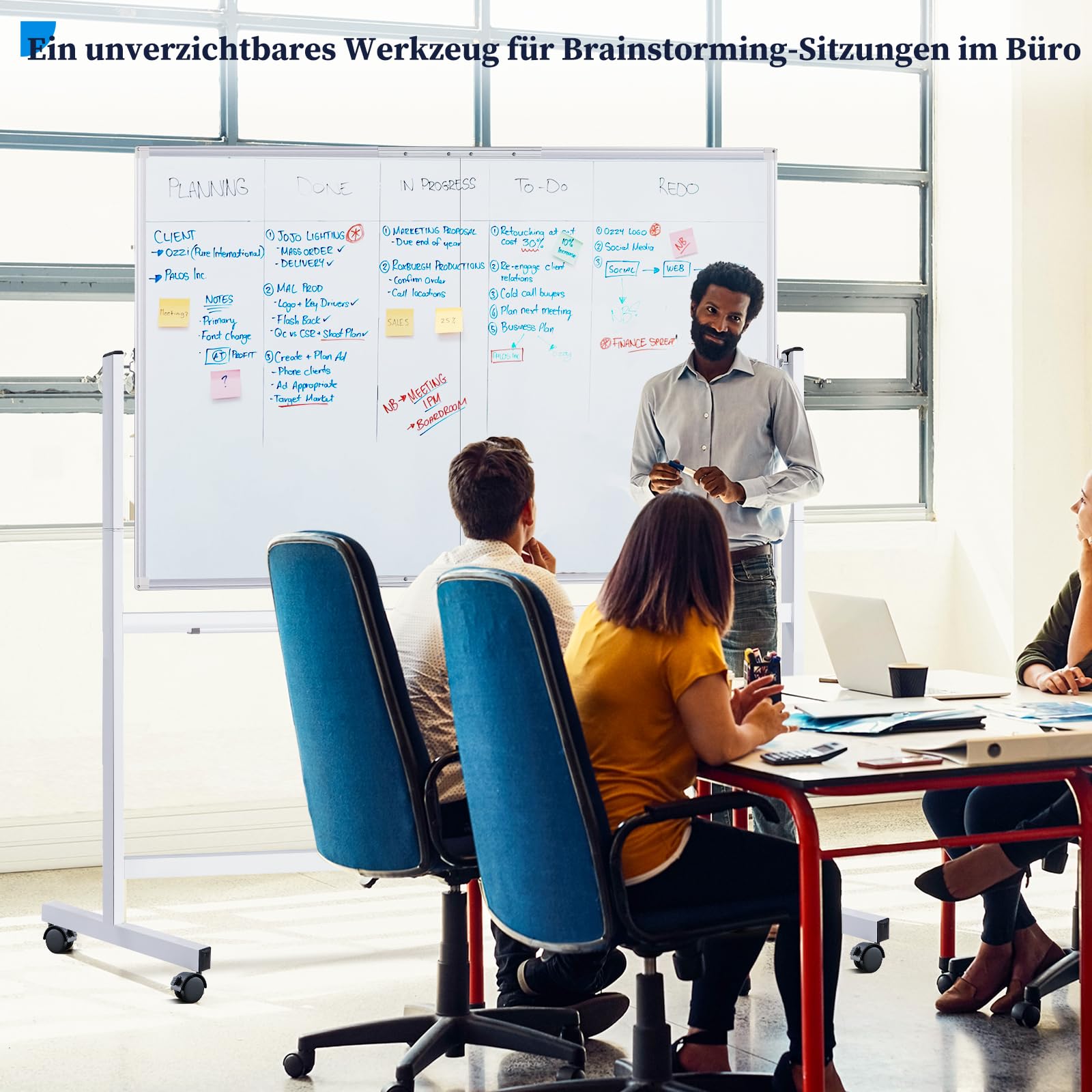 maxtek Whiteboard mit Ständer 120 X 90cm, Doppelseitiges Magnetisches Aluminiumrahmen Mobiles Whiteboard mit Stifte, Schwämme, Tafellöscher