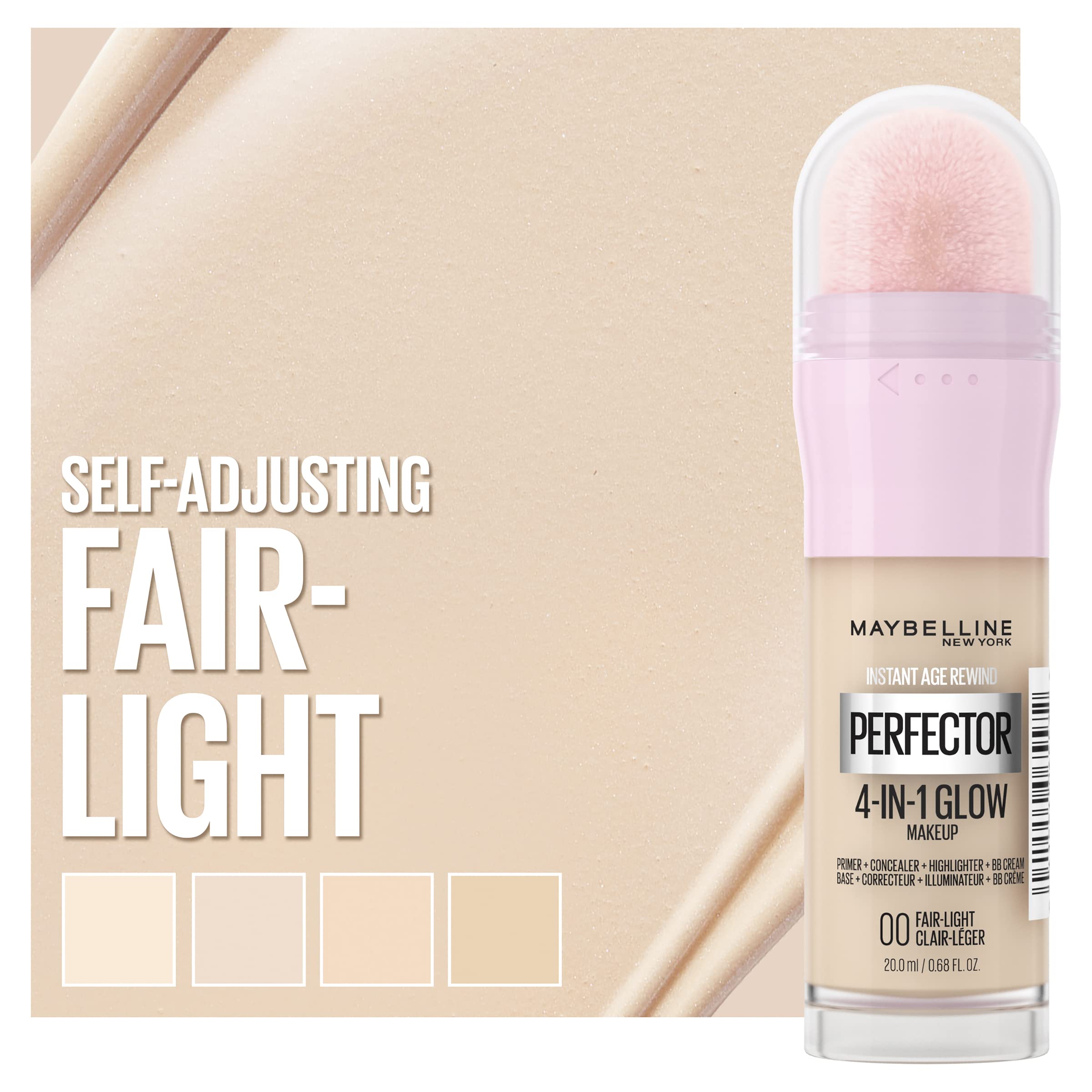 Maybelline New York 4-in-1 Make Up mit Concealer, BB Cream, Highlighter und Primer, für einen perfekten Teint, Foundation mit leichter Deckkraft, Instant Perfector Glow, Nr. 00 Fair Light, 20 ml
