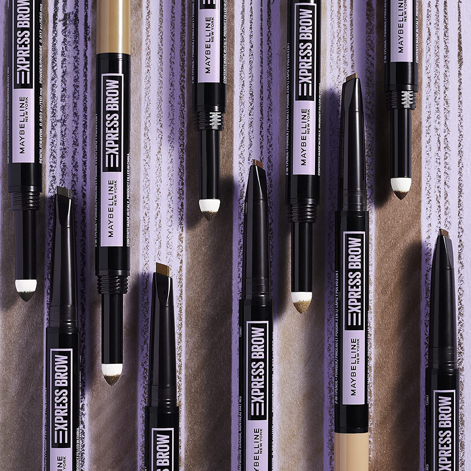 Maybelline New York Express Brow Satin Duo Augenbrauenstift und -puder in Nr. 04 Dark Brown, dunkelbraun (Packung mit 2)