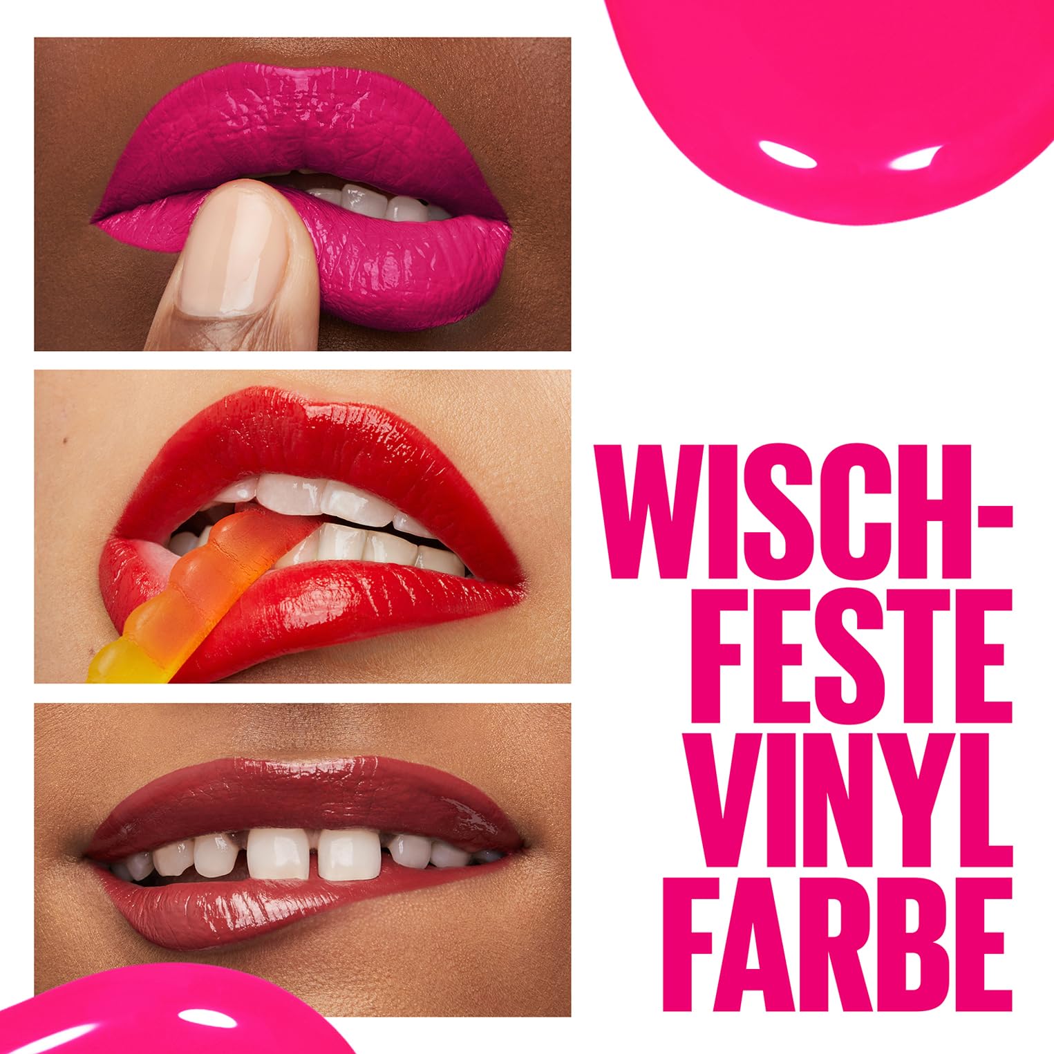 Der flüssige Maybelline New York Super Stay Vinyl Ink Lippenstift aus der Pink Mashup-Reihe kreiert ein sofort glänzendes Vinyl-Finish mit intensiver Farbe und bis zu 16H Halt - ganz ohne zu verschmieren oder zu verblassen! Der Maybelline New York Super Stay Vinyl Ink ist ein absoluter Game Changer! Der flüssige Lippenstift sorgt für intensive Farbe und ein Vinyl-Finish auf den Lippen. Die vegane*, langanhaltende Formel hält bis zu 16 Stunden und verhindert Verschmieren und Verblassen. Hochpigmentierte, elektrisierende Pinktöne den ganzen Tag – werde zum absoluten Trendsetter mit dem Vinyl Lippen-Look. *Ohne Inhaltsstoffe tierischen Ursprungs.