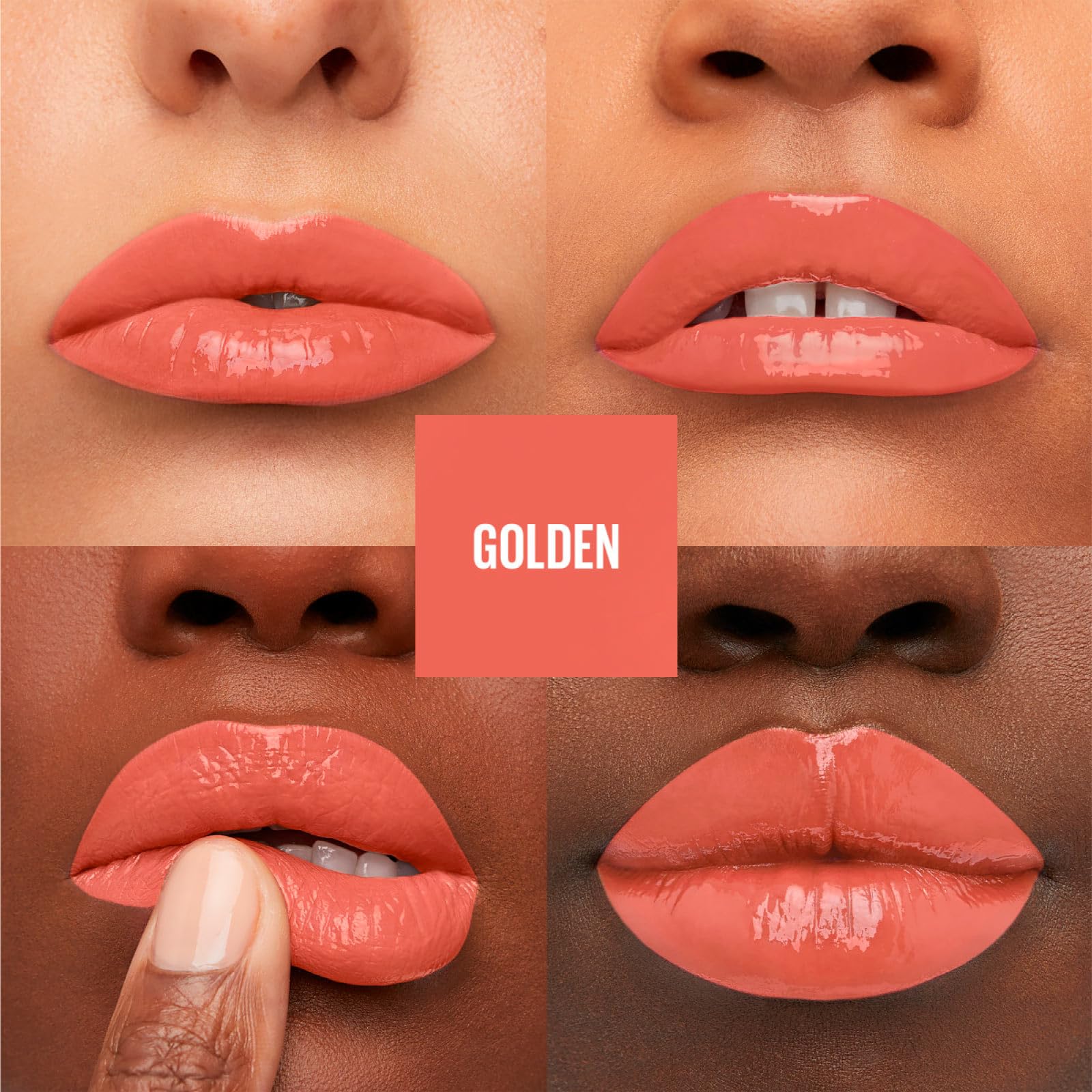 Maybelline New York, SuperStay Vinyl Ink, Lippenfarbe mit glänzendem, vinyleffekt und einer Haltbarkeit von bis zu 16 Stunden. Formel ohne Abfärben, Farbe 105 Golden – 2 Lippenstifte mit