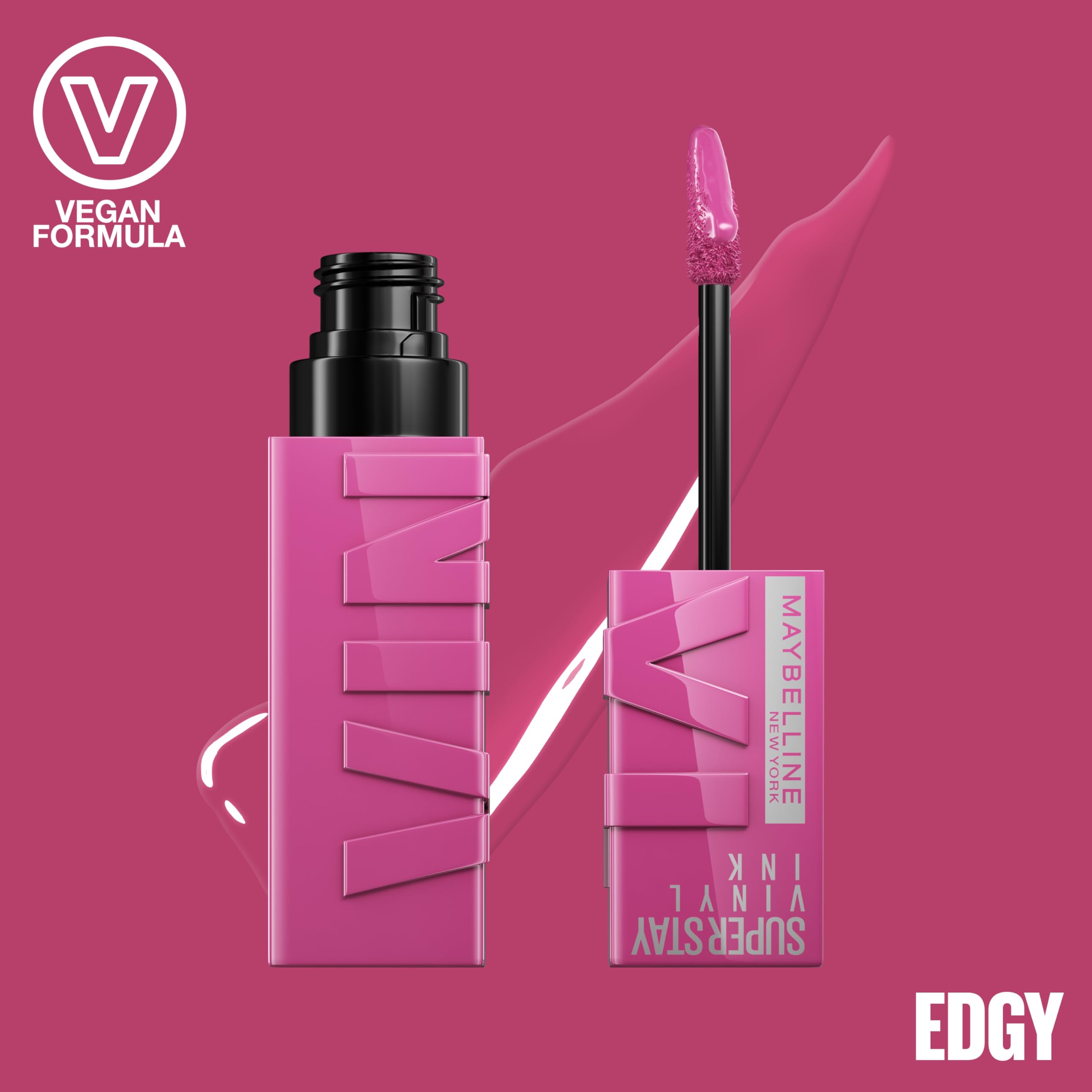 Maybelline New-York SuperStay Vinyl Ink Pink Flüssiger Lippenstift, Vinyl-Effekt, glänzend, dauerhafter Halt, Farbe: Edgy (165)