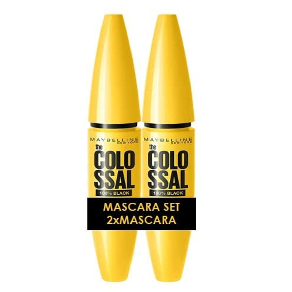 Maybelline New York Schwarze Mascara für kolossales Volumen, Mit Collagen, Wimperntusche im Doppelpack, Volum'Express The Colossal, Black (Schwarz), 2 x 10,7 ml