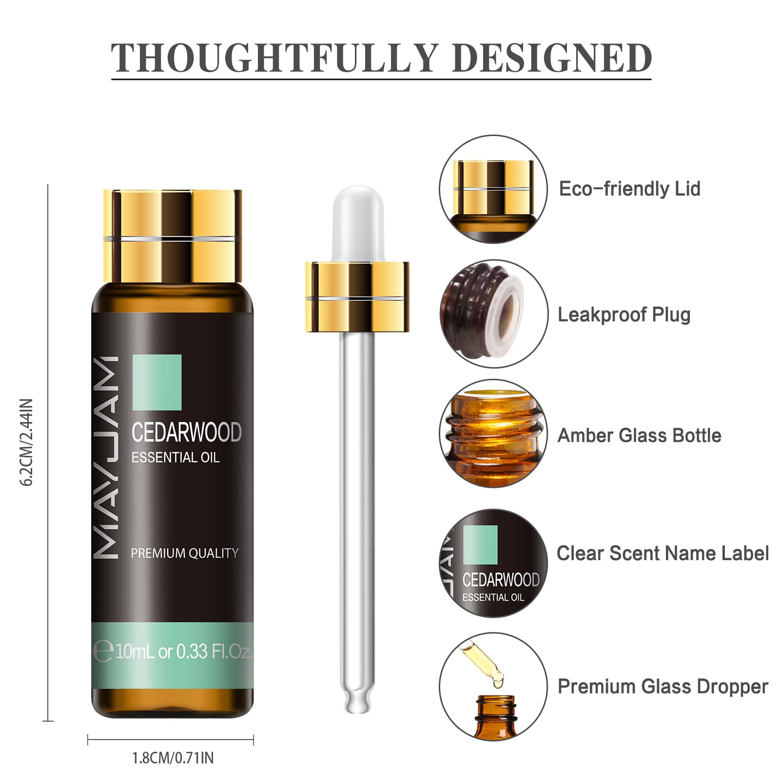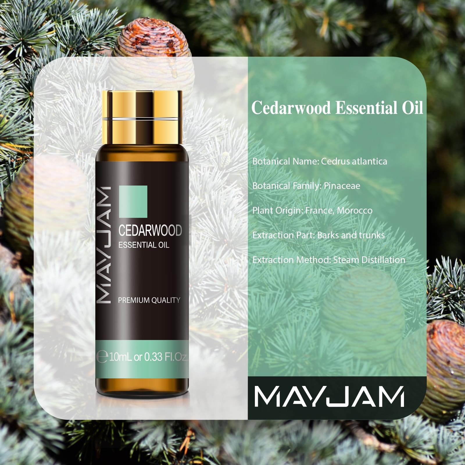MAYJAM Zedernholz Ätherisches Öl 10ML, Zedernholzöl für Diffusor, Luftbefeuchter, DIY, Home,Wardrobes…