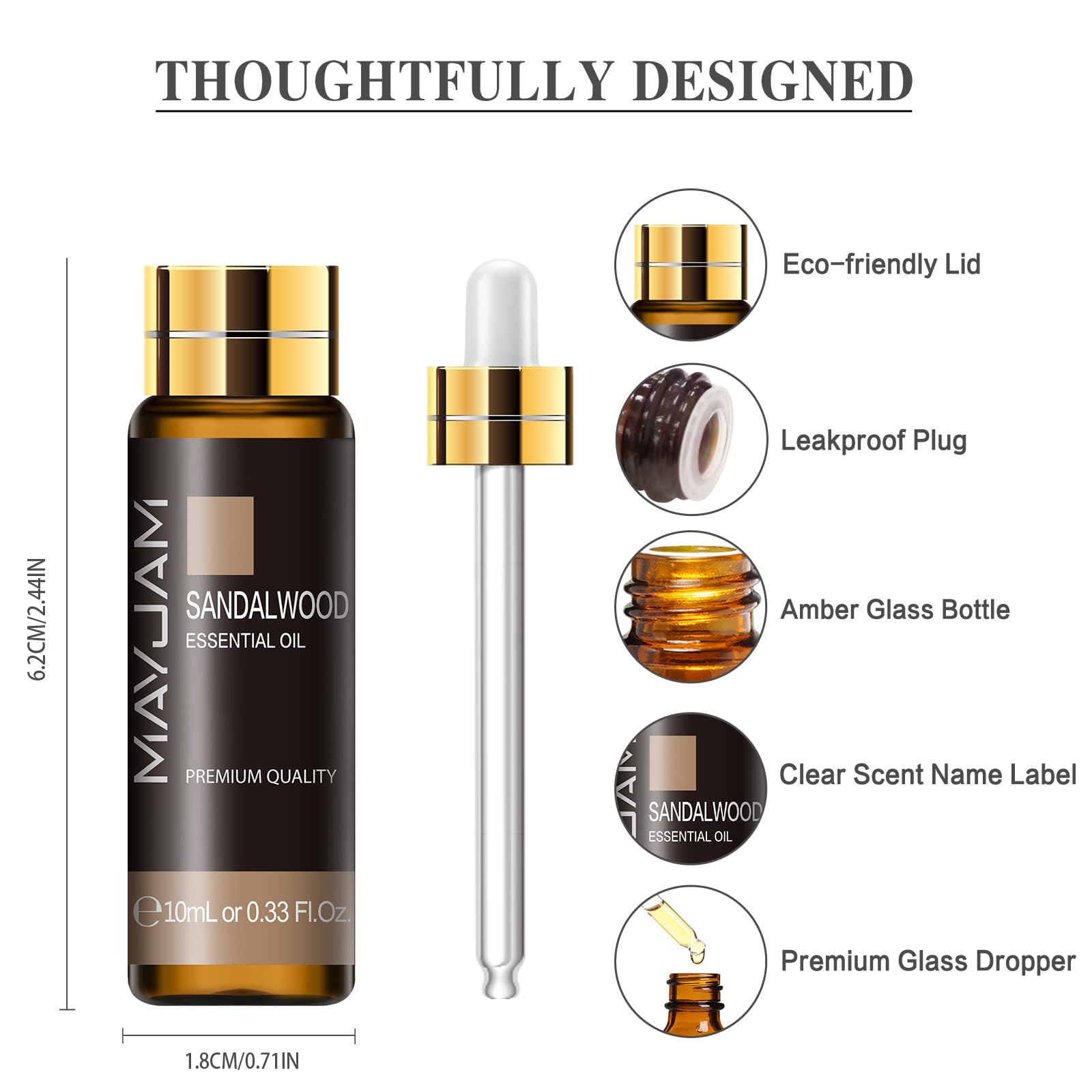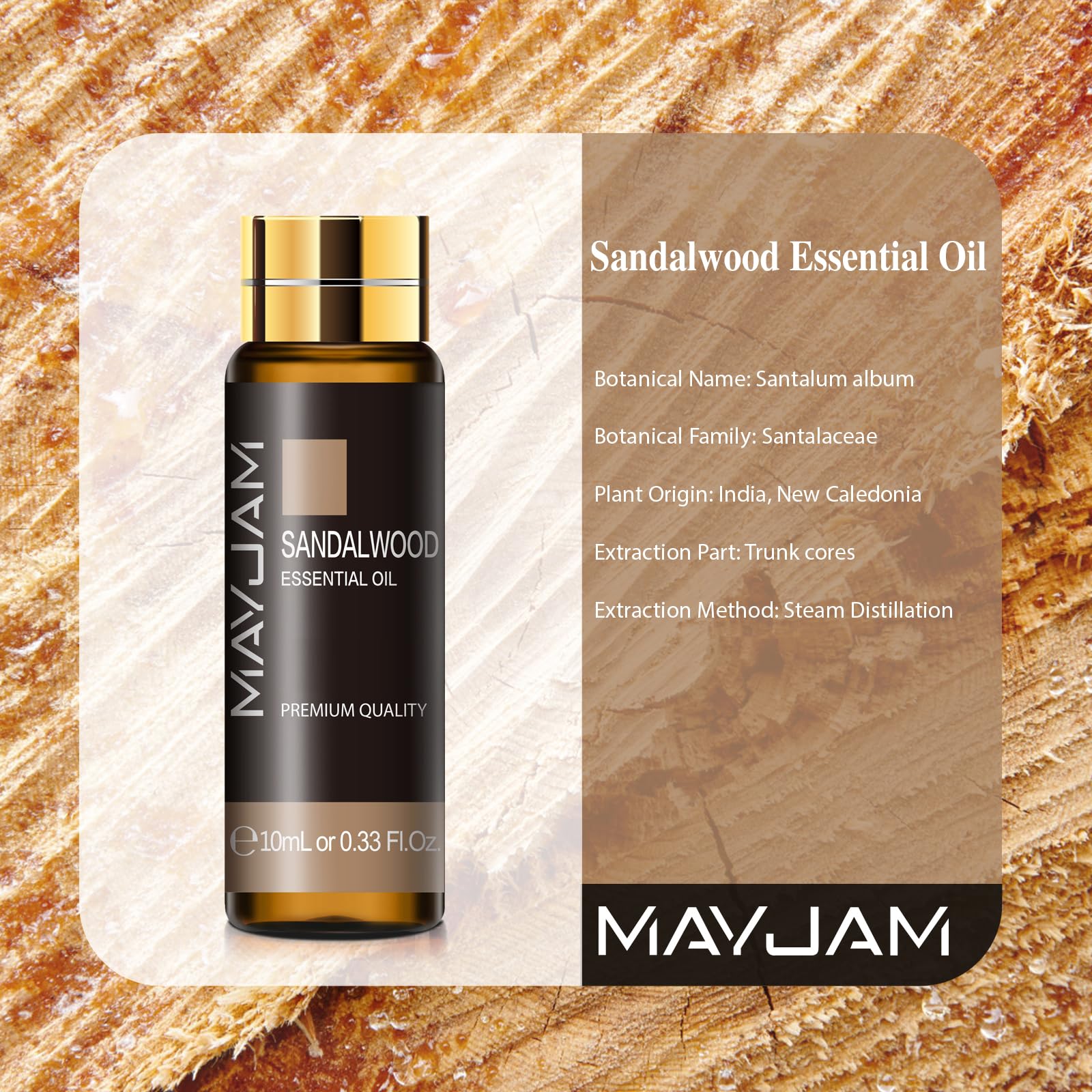 MAYJAM Sandelholz Ätherisches Öl 10ML, Sandelholzöl für Diffusor, Luftbefeuchter, DIY, Home,Wardrobes