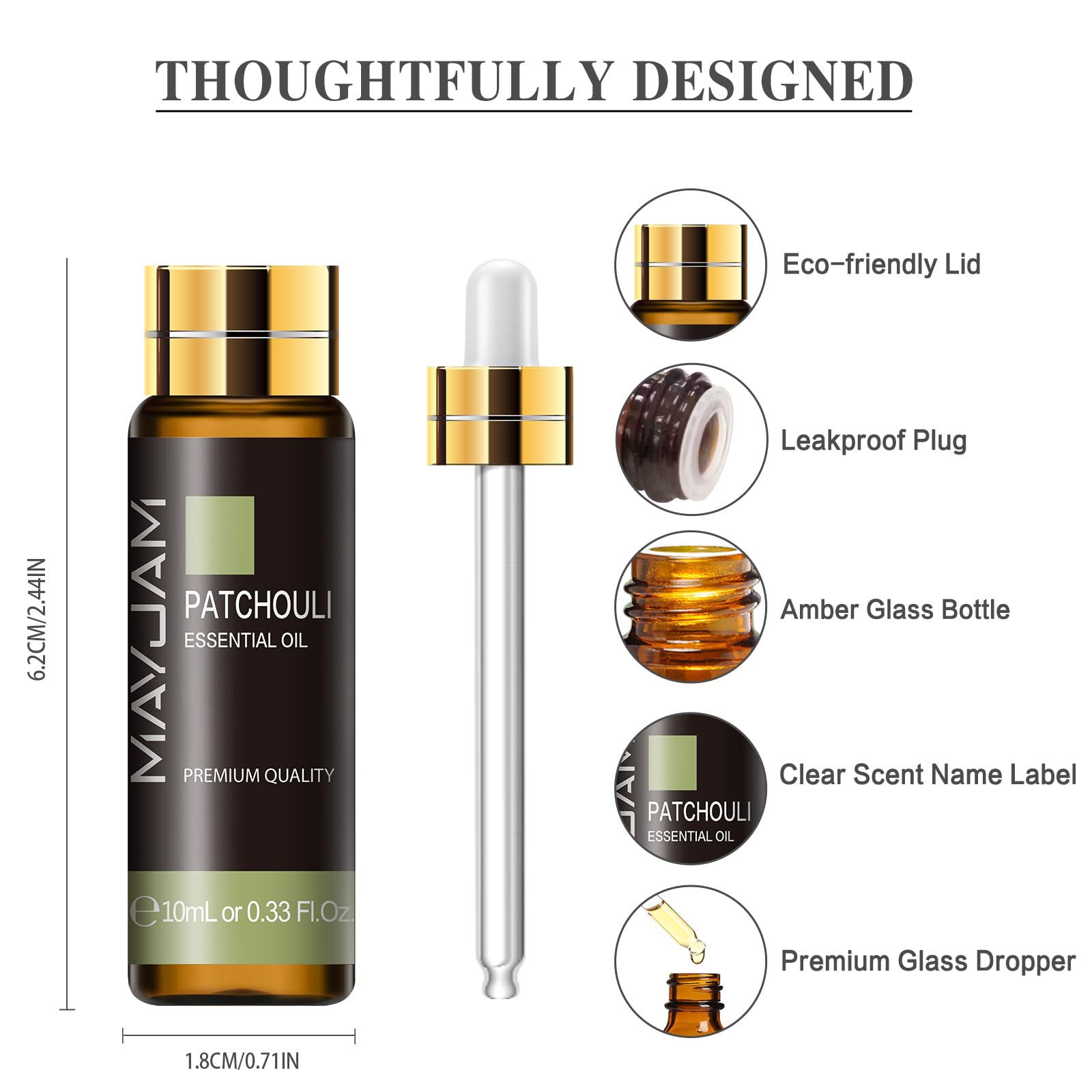 MAYJAM Patschuli Ätherisches Öl 10ML, Patschuliöl für Diffusor, Luftbefeuchter, DIY, Home,Wardrobes
