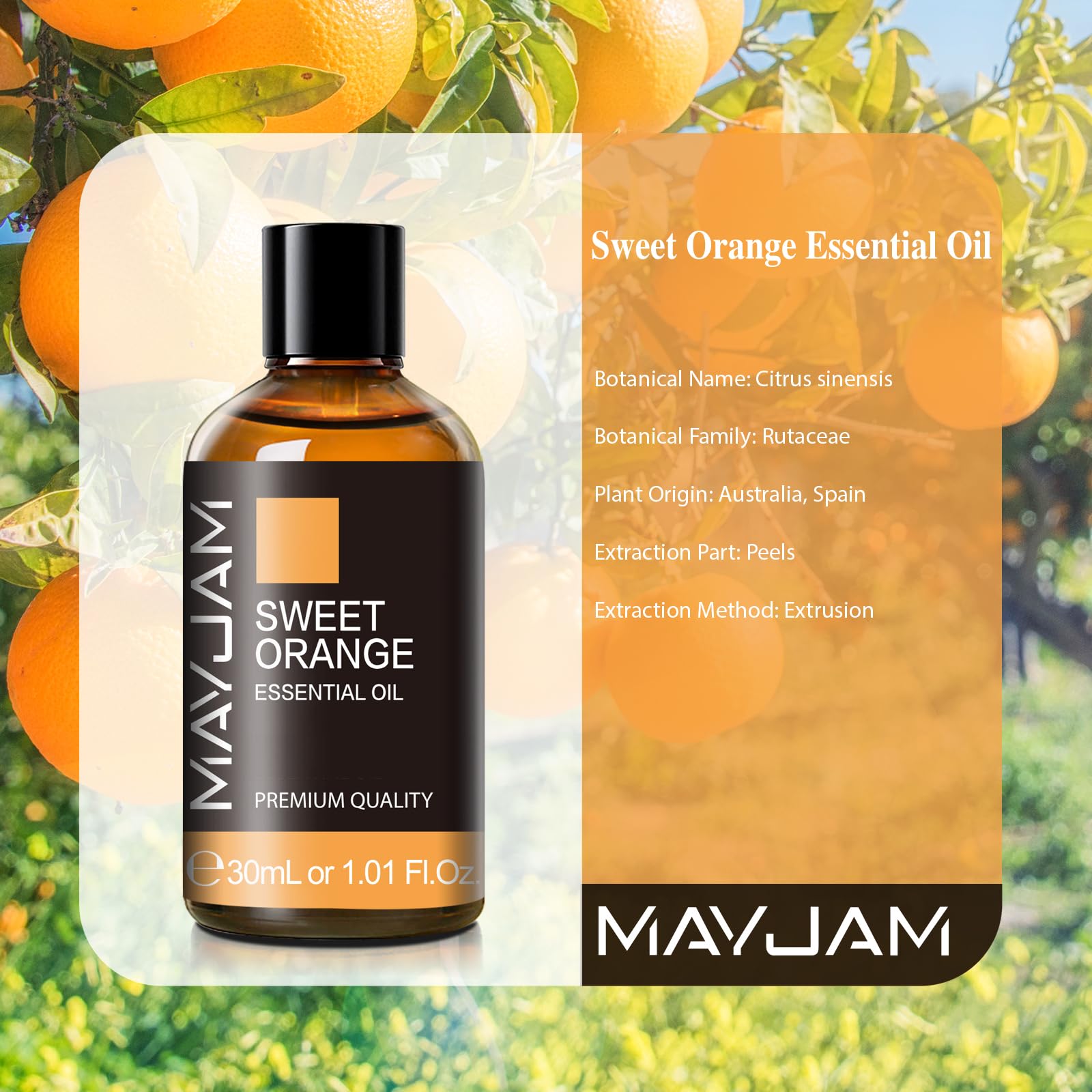 MAYJAM Süsse Orange Ätherisches Öl 30ML, Süsse Orangeöl für Diffusor, Luftbefeuchter, DIY, Home,Wardrobes