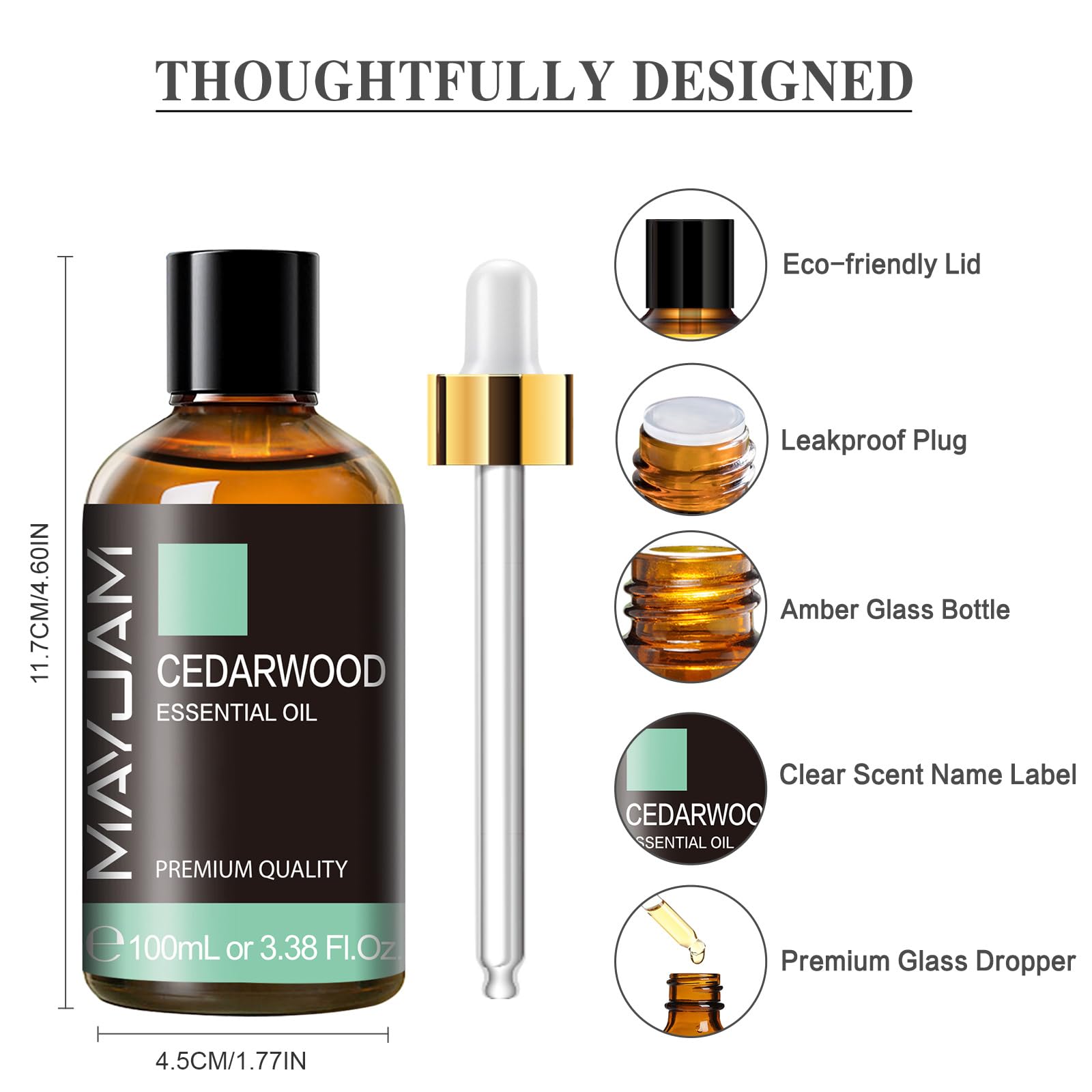 MAYJAM Zedernholz Ätherisches Öl 100ML, Zedernholzöl für Diffusor, Luftbefeuchter, DIY, Home,Wardrobes