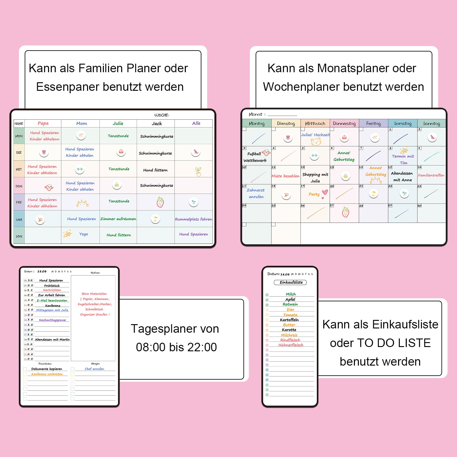Dieser vielseitige Magnetplaner von MCCORL ist Ihr perfekter Begleiter für die Organisation von Familien- und Haushaltsangelegenheiten. Der Set enthält 4 Magnettafeln, die direkt an magnetische Oberflächen wie eisenbeschichtete Kühlschränke oder Whiteboards haften. Sollte Ihr Kühlschrank nicht magnetisch sein, können Sie die Tafeln mithilfe der beiliegenden Kleber anbringen. Die Planer sind wöchentlich organisiert und umfassen Bereiche für Termine, Einkaufslisten und To-Do-Listen. Achten Sie darauf, die Stifte mit der Kappe nach unten zu lagern, damit die Tinte nicht verblasst. Jeder Planer misst 0,5 cm in der Breite und ist aus Papier und Edelstahl gefertigt. Dieser vielseitige Planer ist ideal für Erwachsene und kann für Familienplanung, Haushaltsorganisation, Mahlzeitenplanung und Aufgabenmanagement verwendet werden.