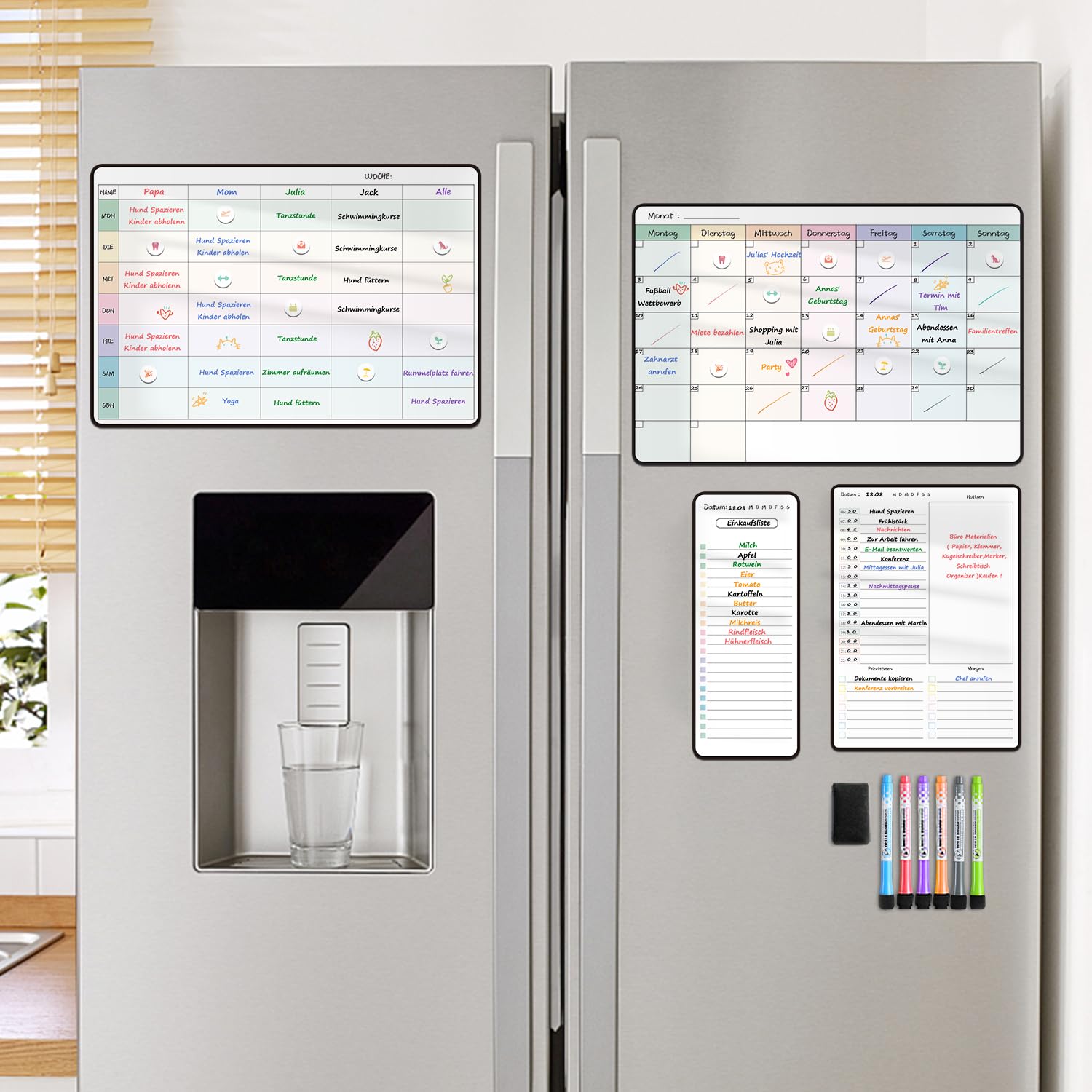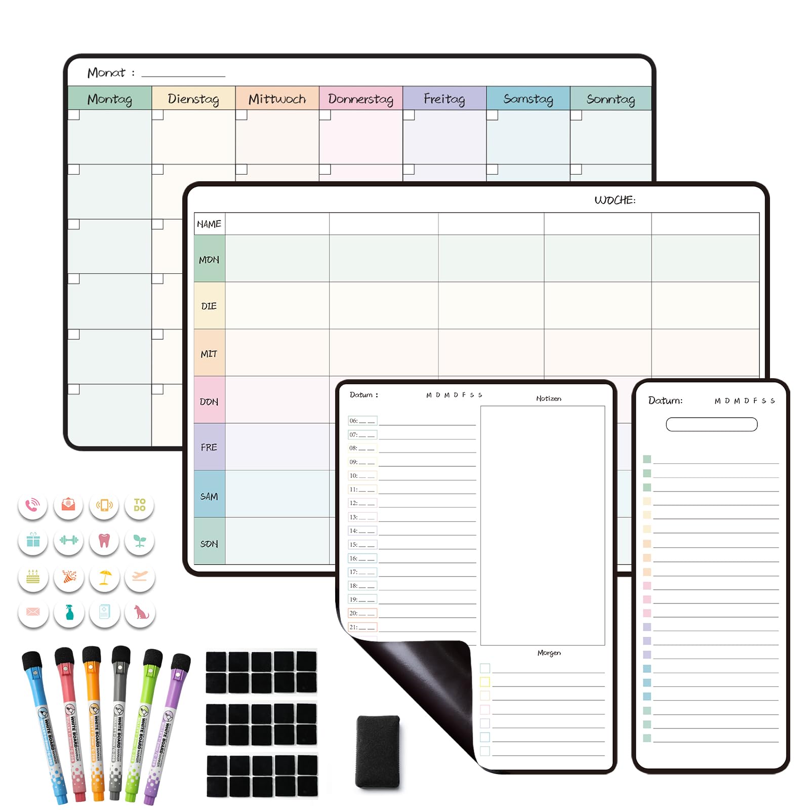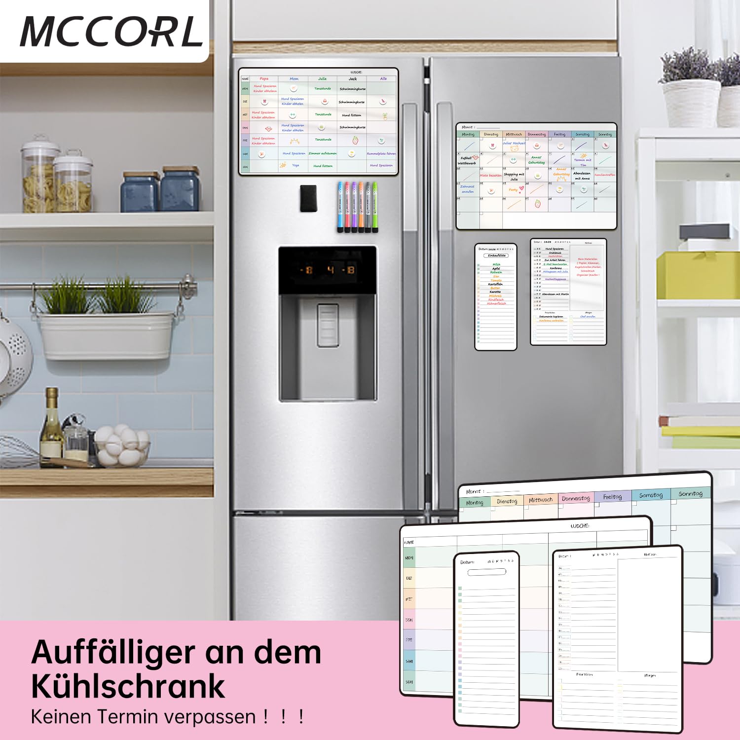 MCCORL Magnetisch Wochenplaner+Monatsplaner+Tagesplaner/Stundenplaner+To Do Liste/Einkaufsliste abwischbar, Magnettafeln für Kühlschrank, perfect als Familienplaner und Haushaltsplaner (4 Stücke)