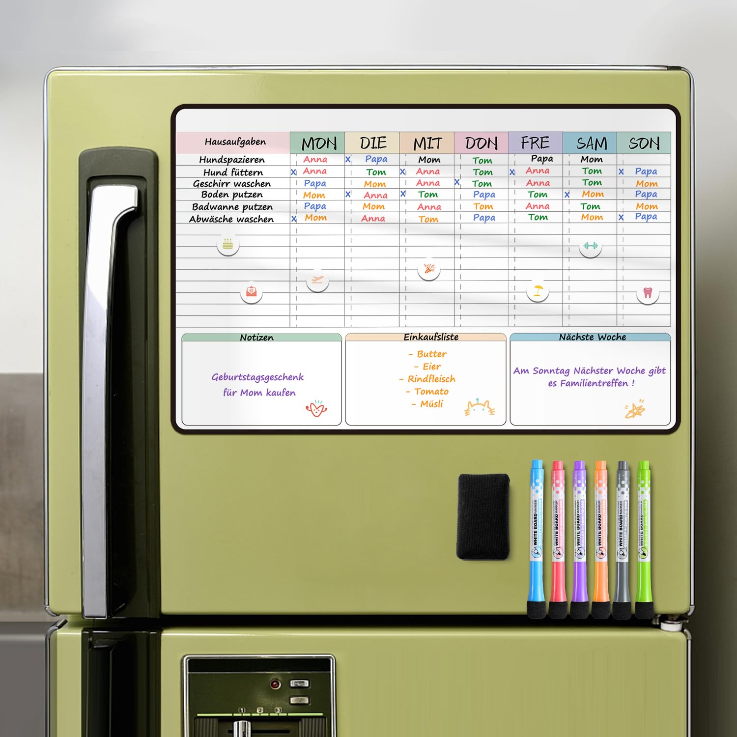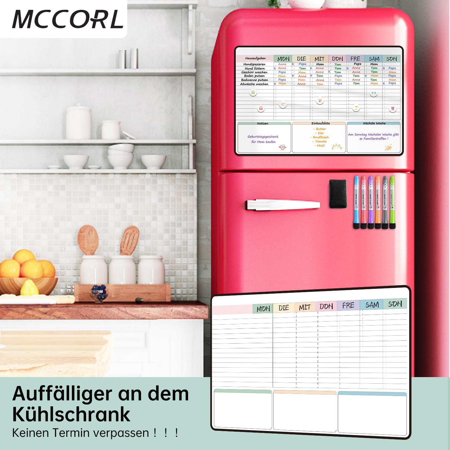 MCCORL Magnetisch Familien Haushaltsplaner, Wochenplaner und Putzplaner für Haushalt Abwischbar,Magnettafel Kühlschrank,Aufgabenplaner 42×28cm auf Deutsch