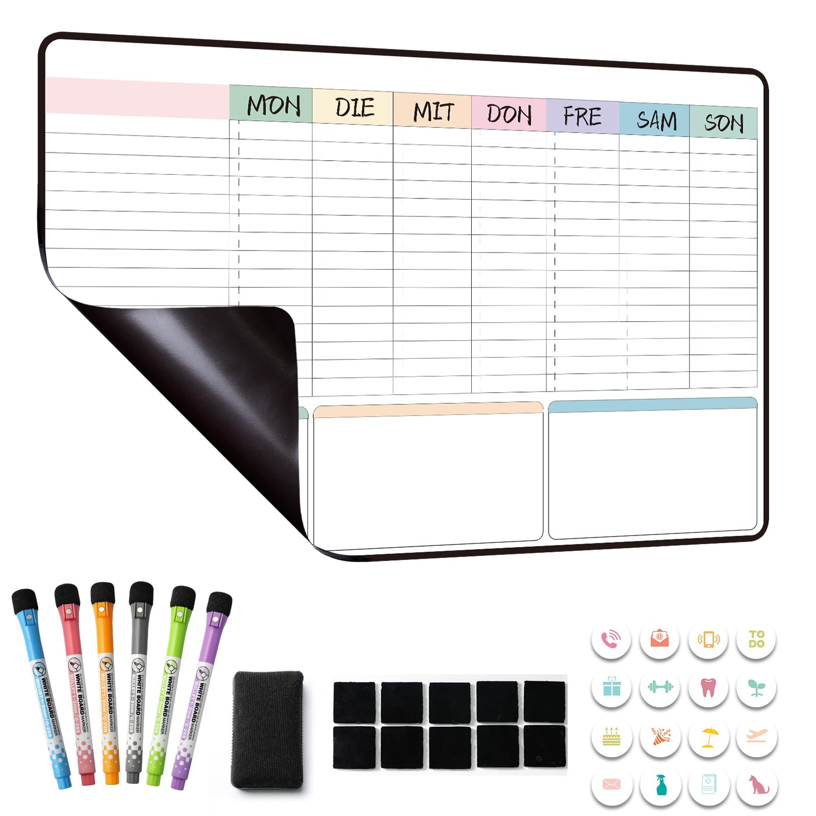 - 【Magnetisch】Dieser Wochenplaner enthält Magnetpulver, kann direkt an Eisen-Oberfläche halten, wie zB. Eisen-Kühlschrank