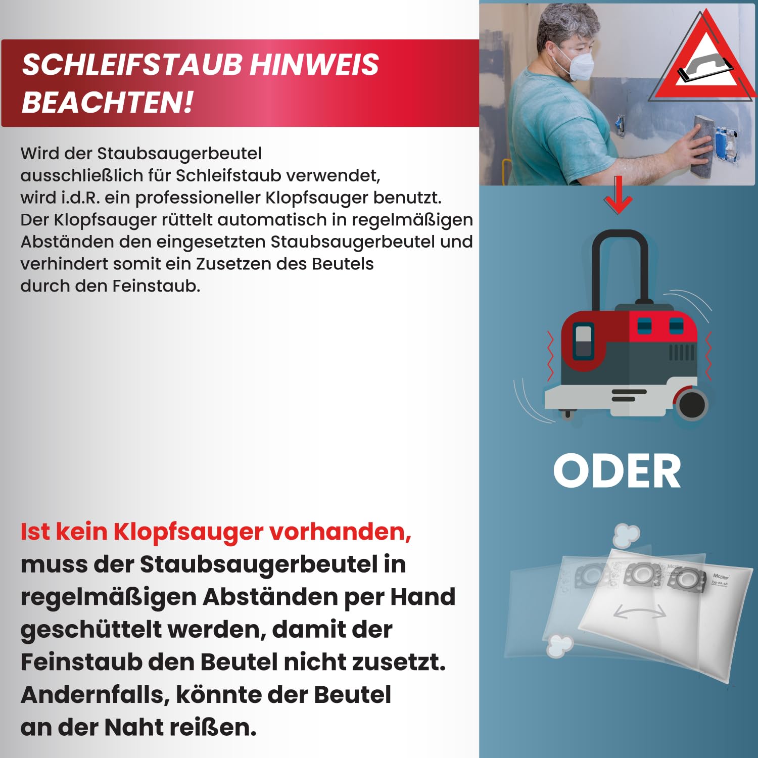 • Reissfestigkeit - Staubfilterbeutel aus reissfestem, 3-lagigem Mikrovlies, verschliessbare Halteplatte, hohe Saugkraft, Allergikerfreundlich, praktisch & faltbar, passgenau durch perfekte Anpassung