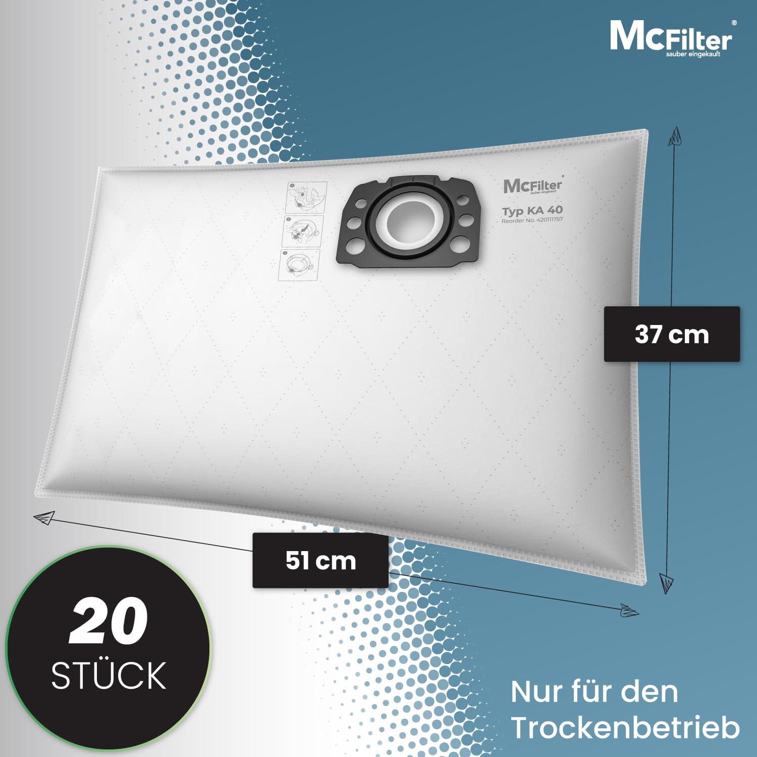 McFilter I 20 Staubsaugerbeutel kompatibel mit Kärcher WD2 Plus V-12/4/18/C, WD3 Serie V-17/4/20, KWD1-3, WD2-18,WD3-18,WD2 Plus WD3.200-3.800 NT 251,SE4001/SE4002, passend wie KFI 357 2.863-314.0