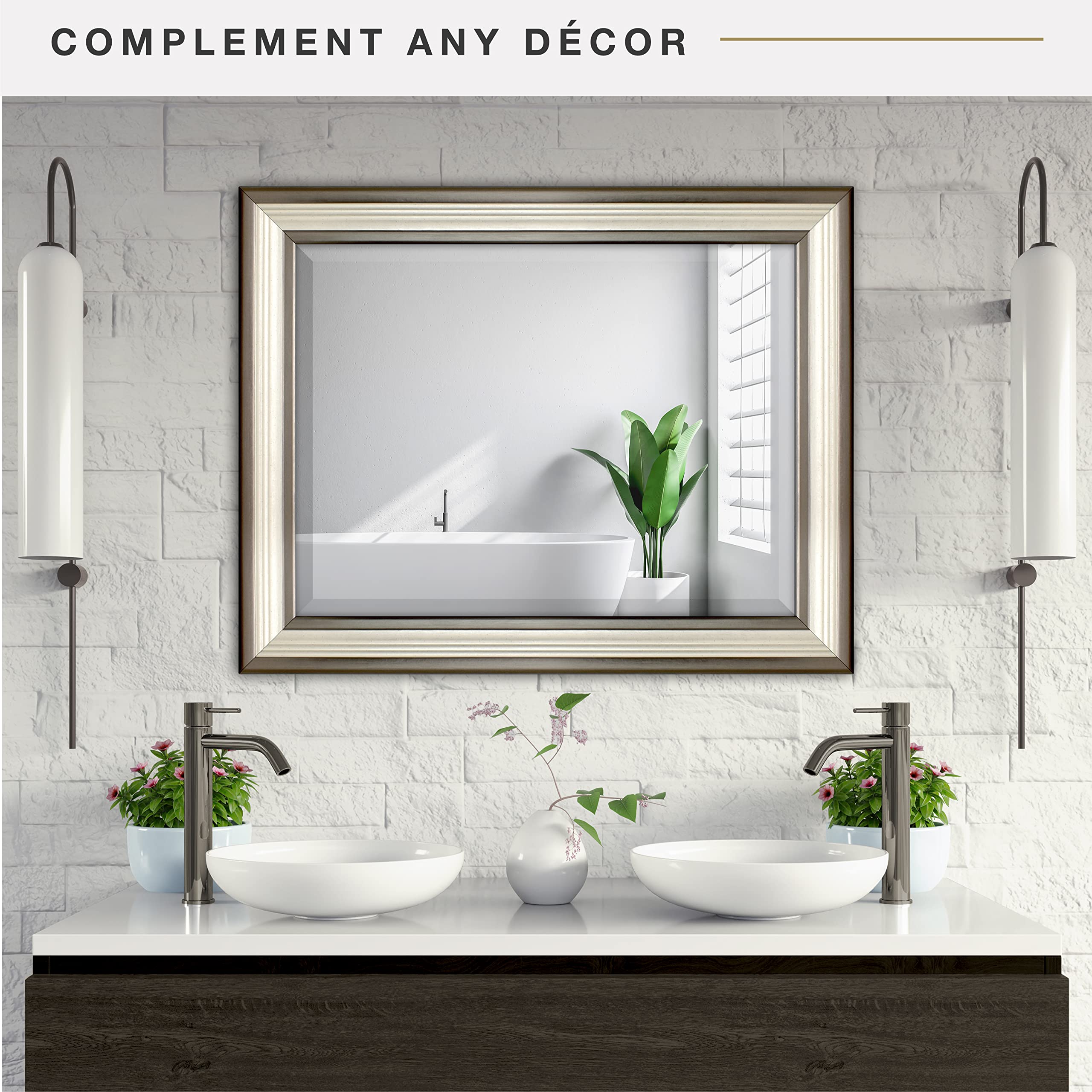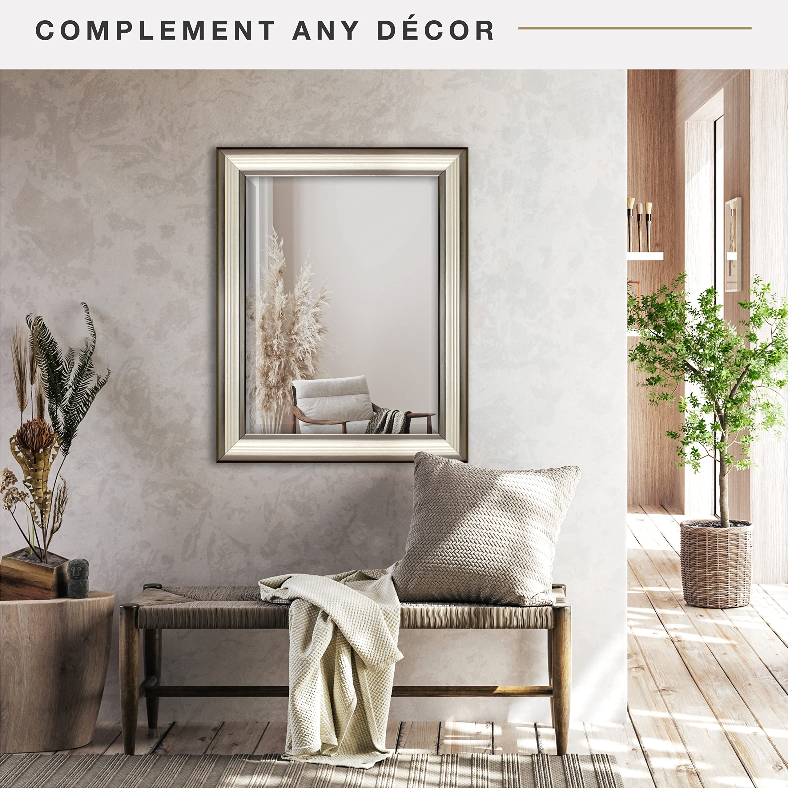 MCS 45,7 x 61 cm geriffelter Spiegel, 45,7 x 61 cm, zweifarbig, warmes Zinn und Silber