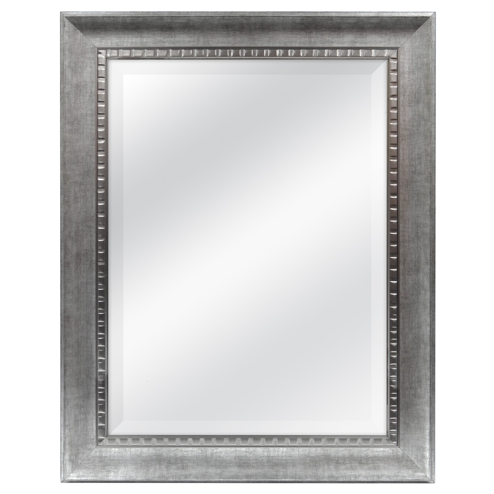 MCS Grosser Wandspiegel, abgeschrägter Rahmen mit silberfarbenen geprägten Details und abgeschrägten Details, vertikaler und horizontaler Wandspiegel für Badezimmer, Schlafzimmer und Wohnzimmer, 23,5 x