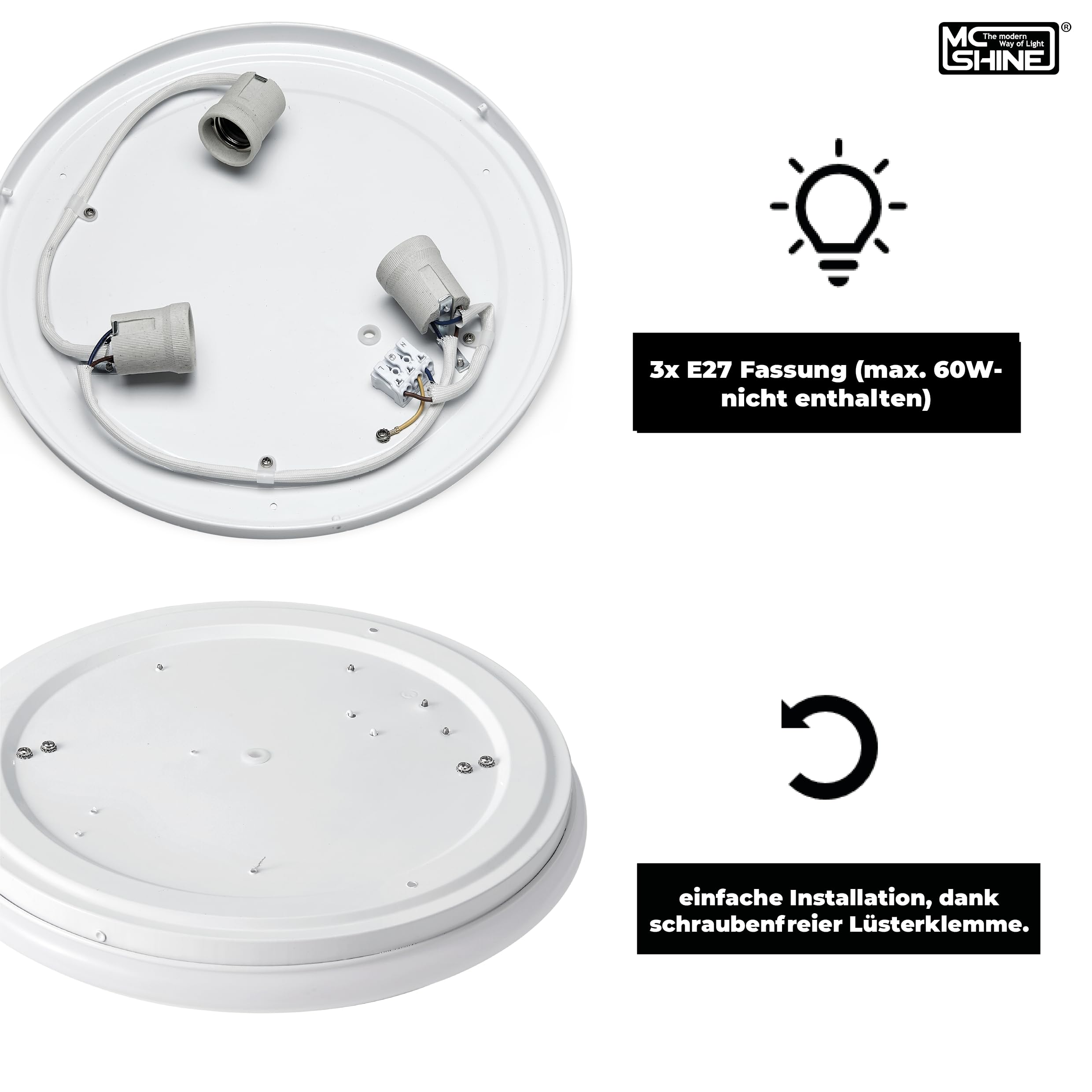 McShine Deckenleuchte | STAR | Ø37,5cm 3-flammig Sockel für E27 Leuchtmittel | runde Deckenlampe LED geeignet, weiss für Wohnzimmer, Flur, Arbeitszimmer, Büro
