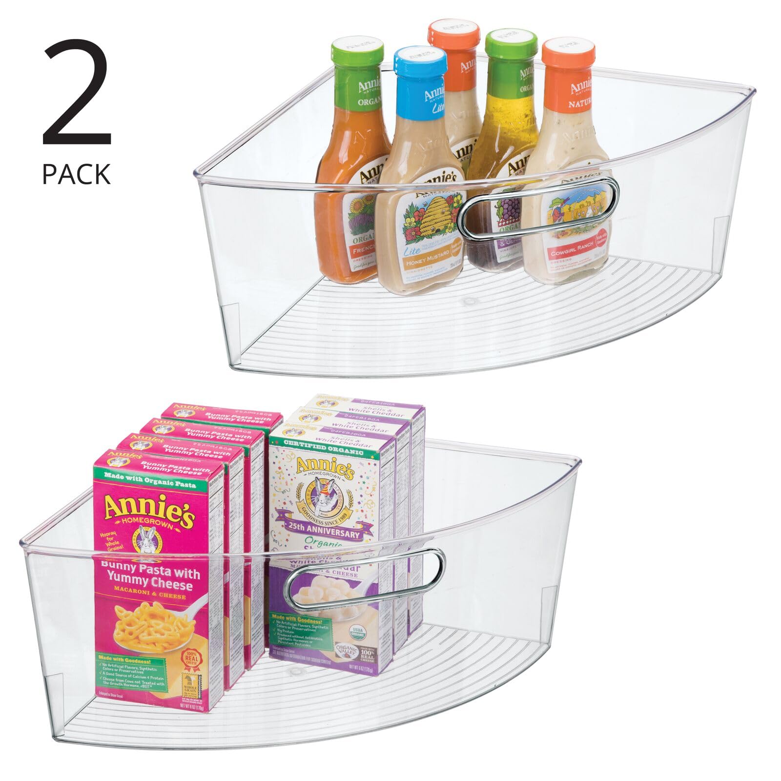 mDesign 2er-Set Aufbewahrungskorb (gross) – praktischer Küchen Organizer aus haltbarem Kunststoff – viertelförmiger Aufbewahrungsbehälter für Ecken – zum Kreis kombinierbar – durchsichtig