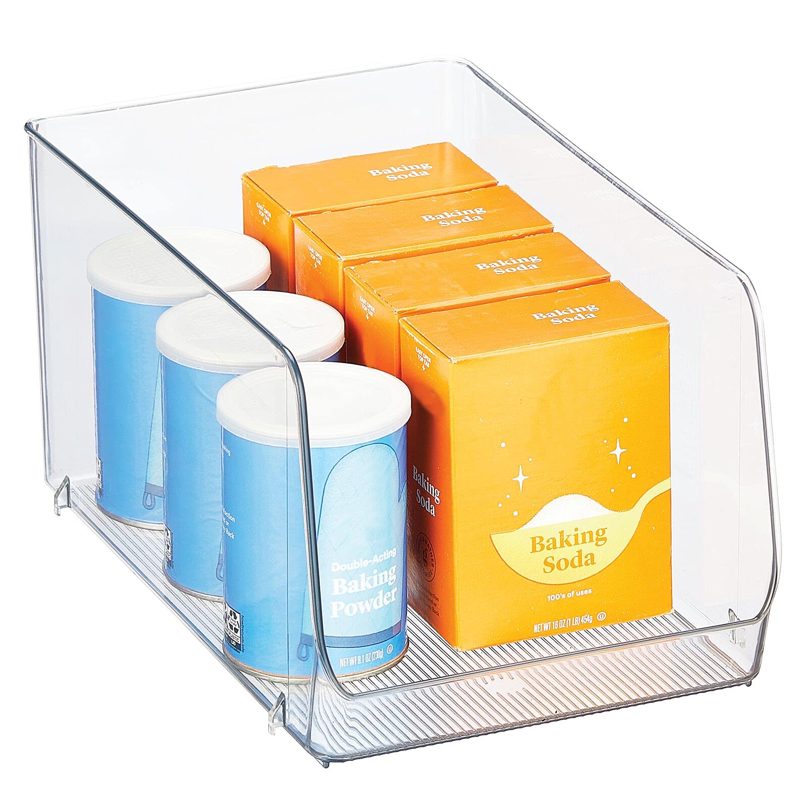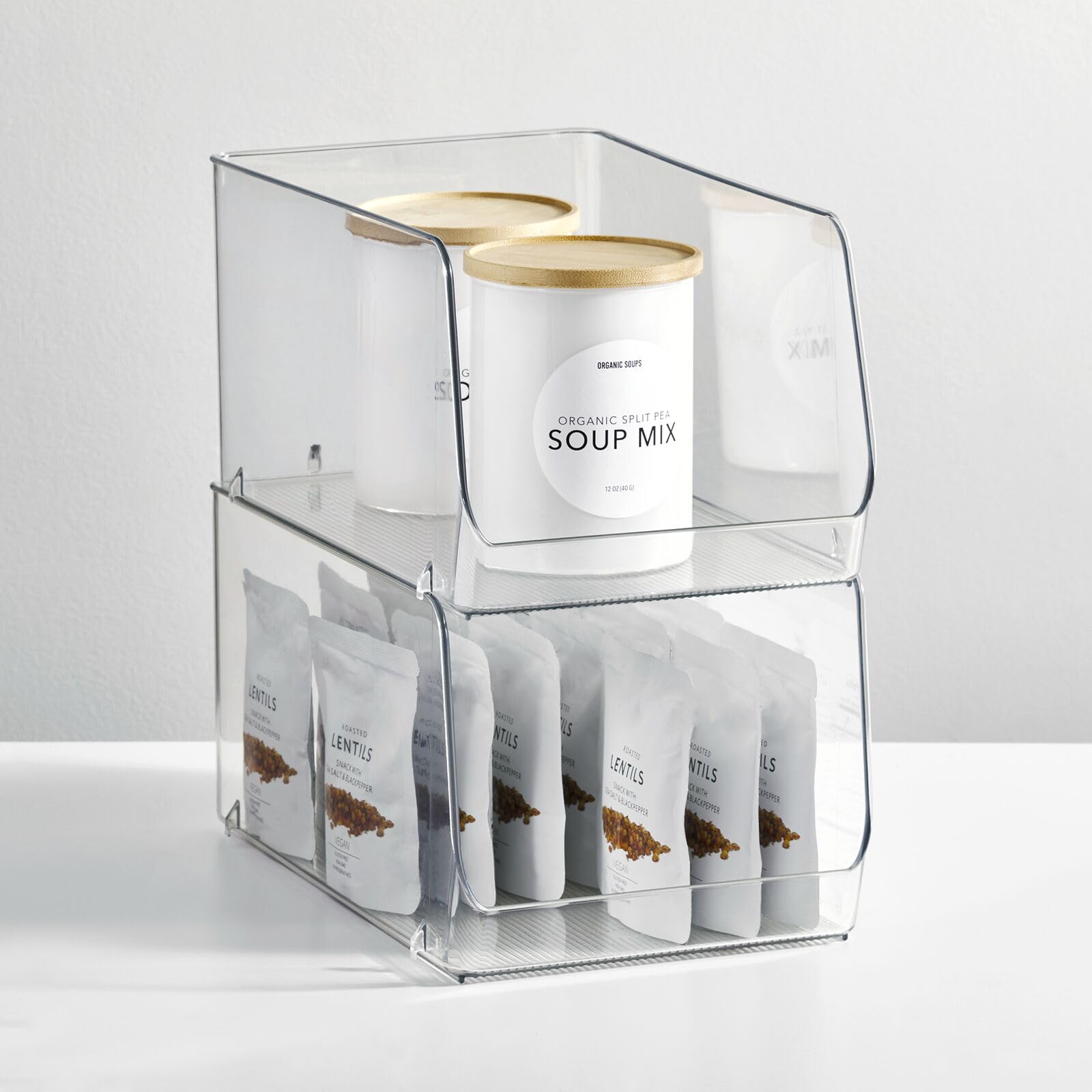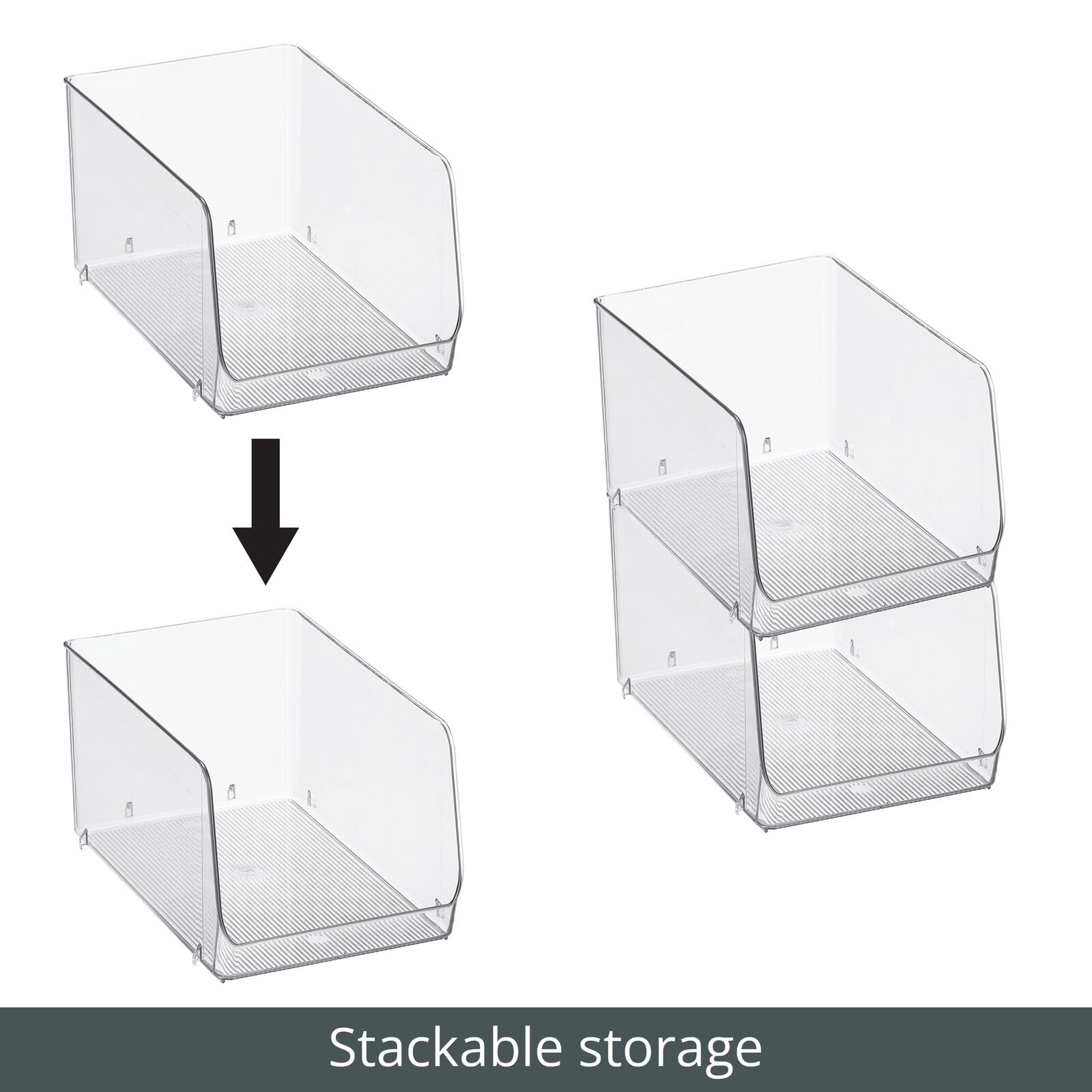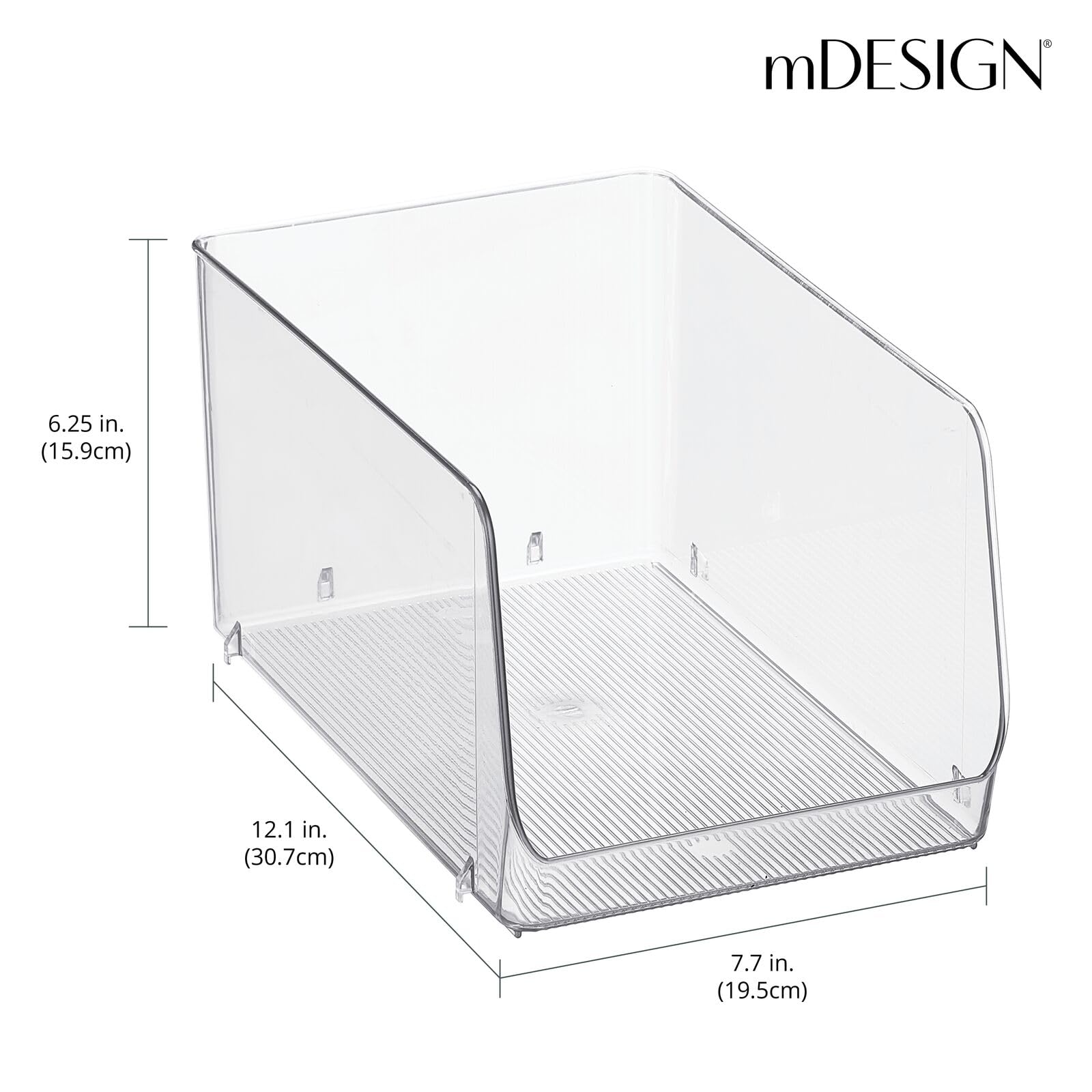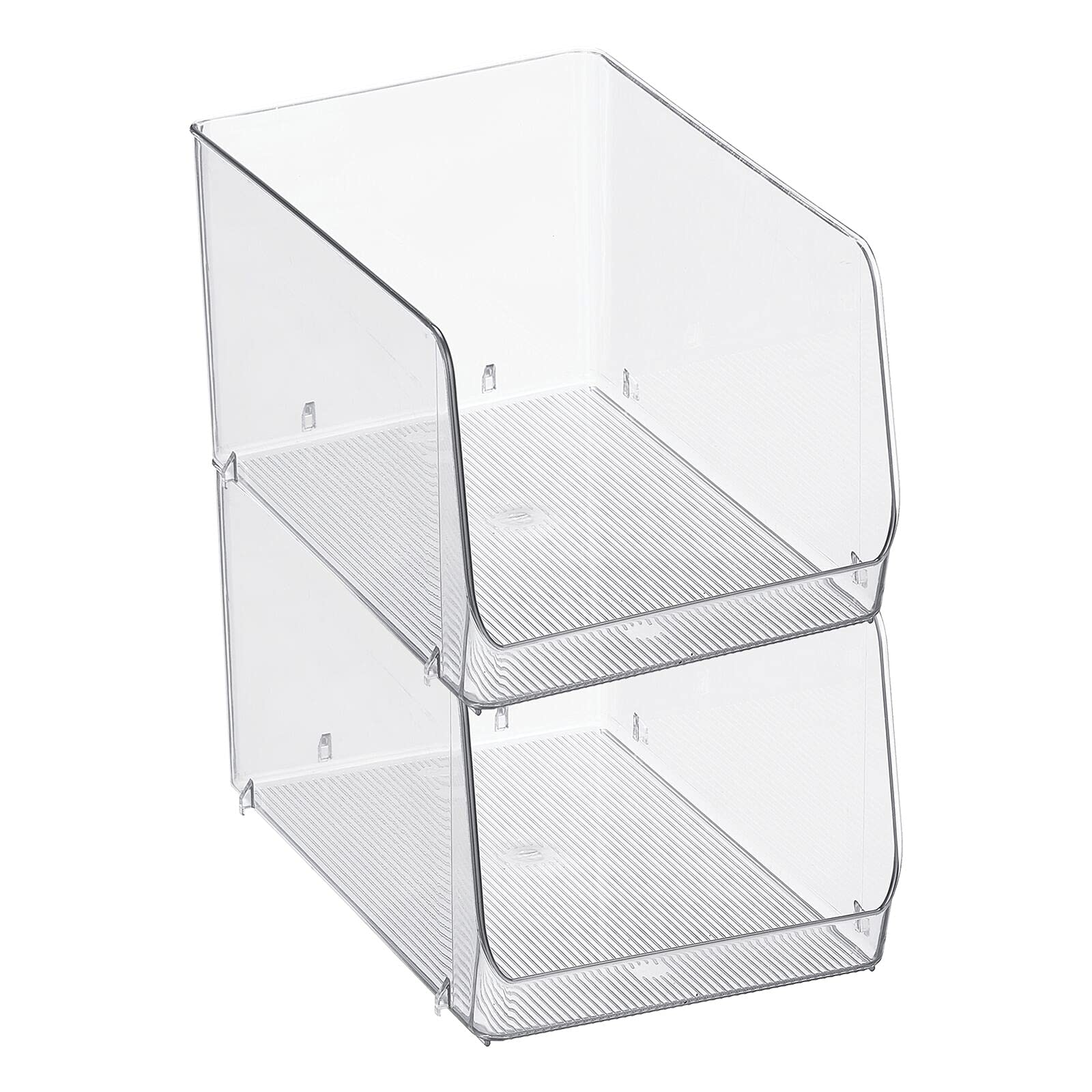 mDesign stapelbare Aufbewahrungsbox für Lebensmittel – Küchen Ablage mit offener Vorderseite für Kühlschrank, Schrankfach oder Gefriertruhe – Kühlschrankbox aus Kunststoff – 2er-Set – durchsichtig
