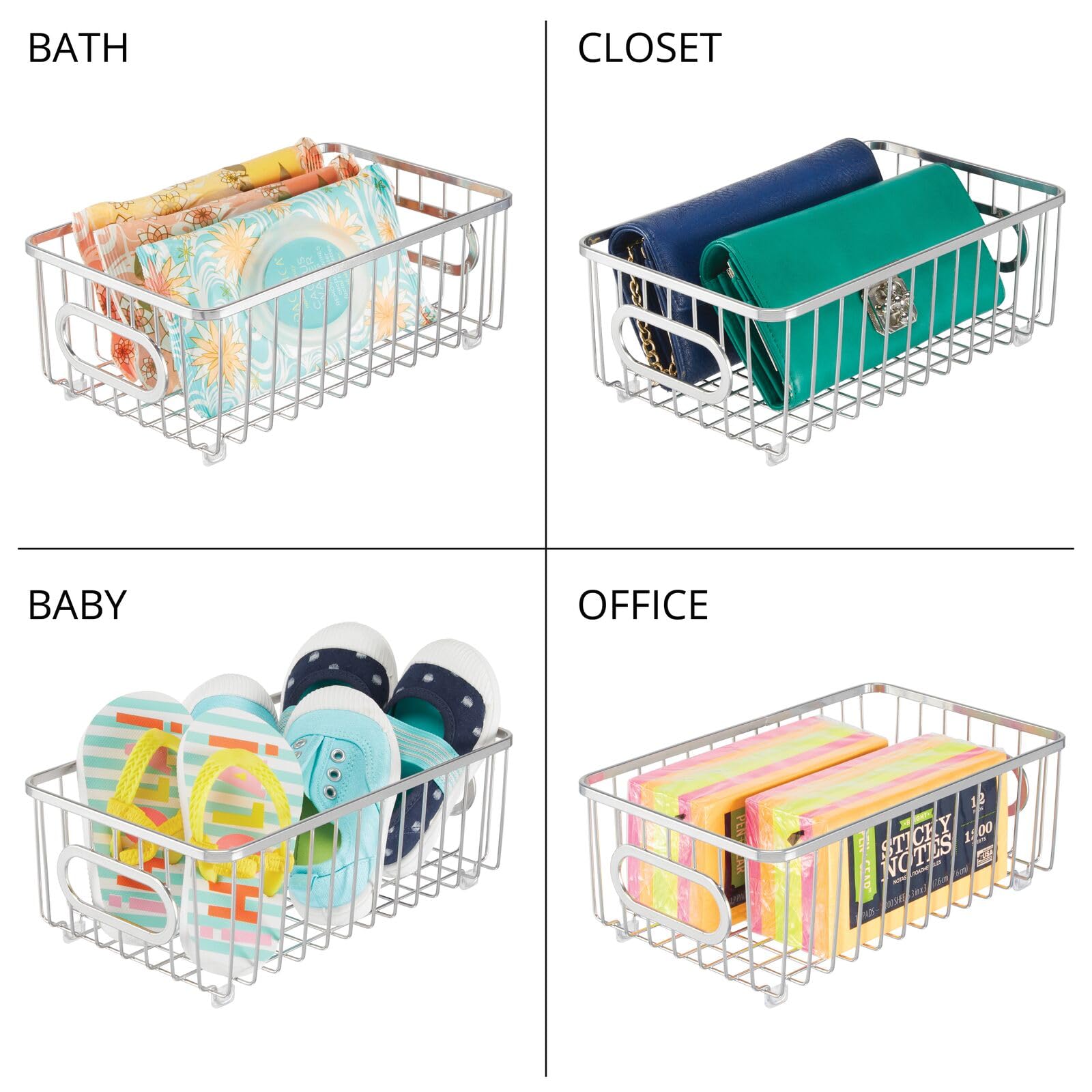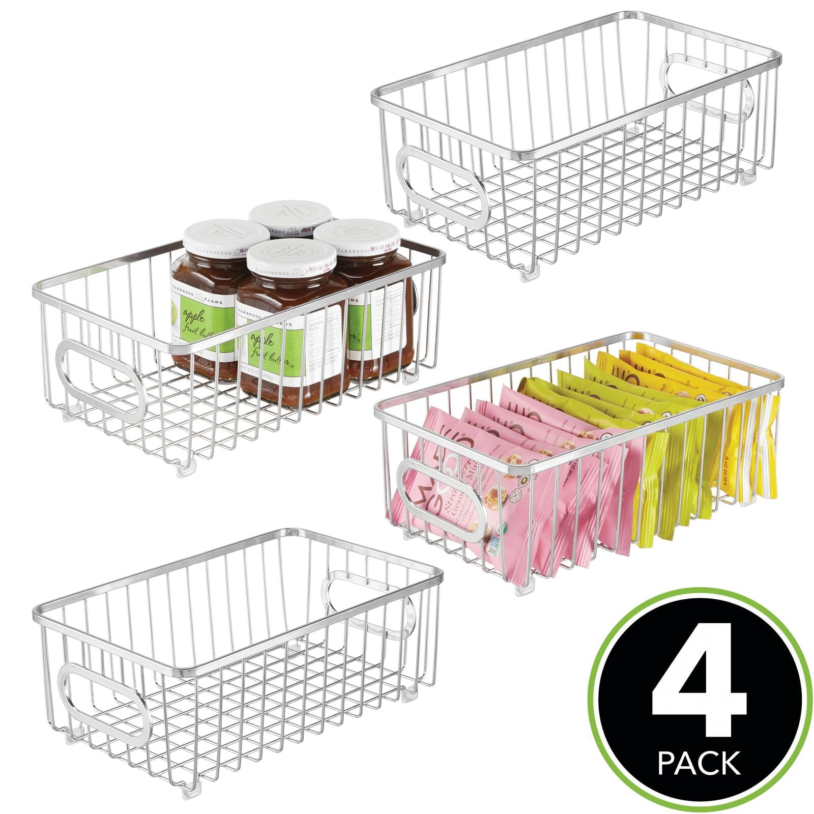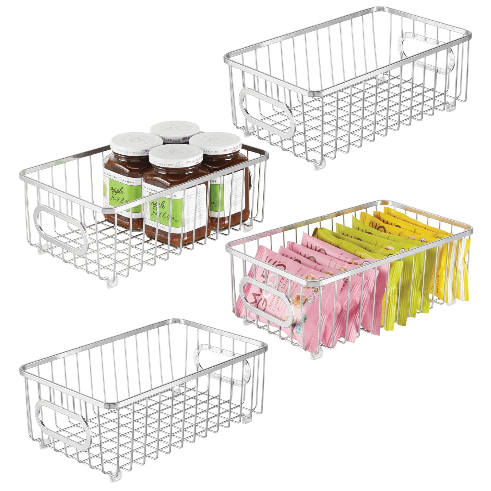 mDesign 4er-Set Küchenkorb aus Metall – flexibler Aufbewahrungskorb für die Küche, Vorratskammer etc. – kompakter und universeller Drahtkorb mit Griffen – silberfarben